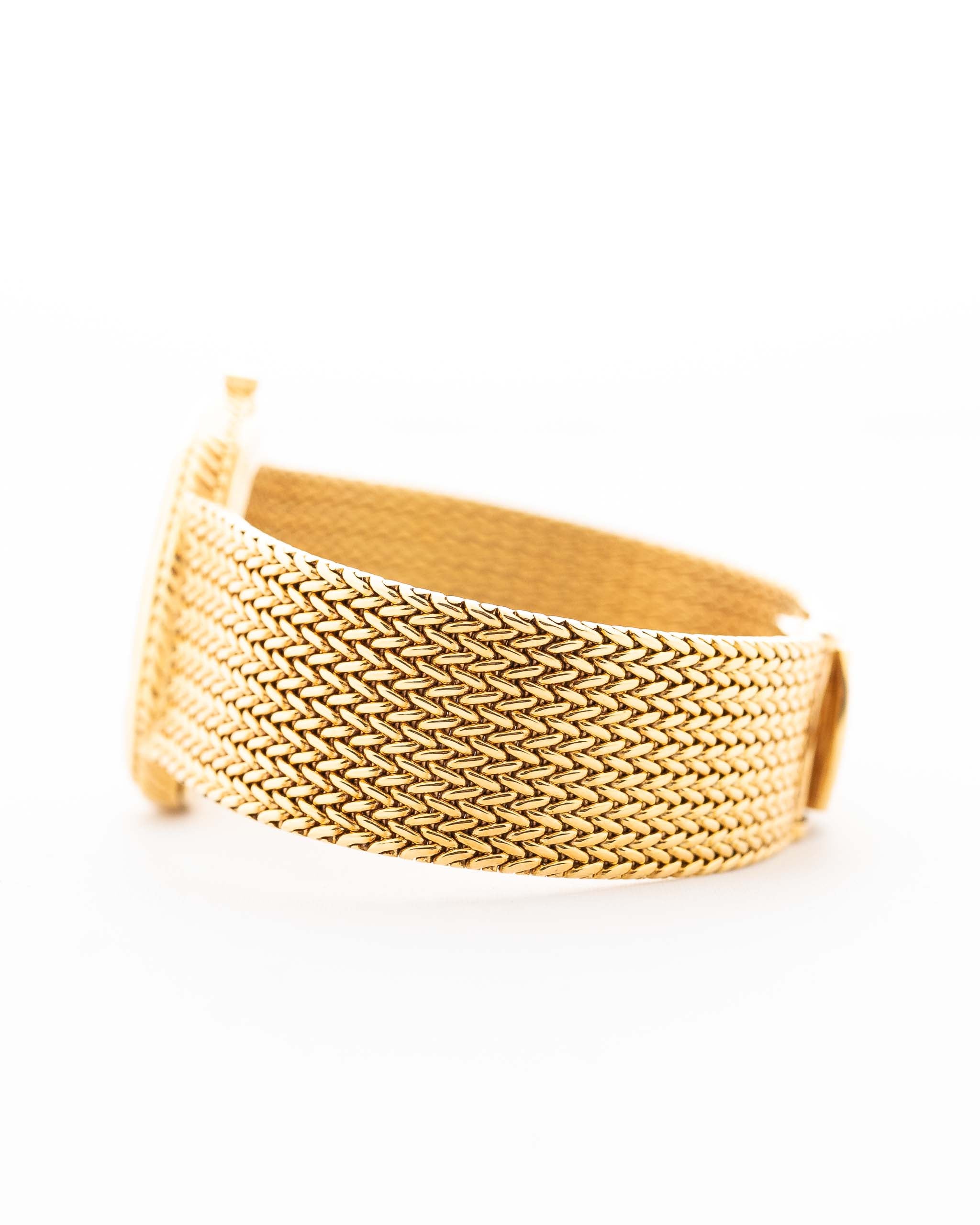 Abgerundet wird die Uhr durch ein integriertes, geflochtenes Armband aus 18 Karat Gelbgold, das fließend und architektonisch wirkt und diese Uhr ebenso zu einem Schmuckstück wie zu einem Präzisionsinstrument macht.