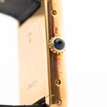 In einem eleganten Gehäuse aus 18 Karat Gelbgold mit wunderschön erhaltenen Linien und den Proportionen von 23,5 x 30,5 mm ist diese Uhr ein diskreter und doch unbestreitbar stilvoller Auftritt am Handgelenk. Das Zifferblatt ist makellos: klare römische Ziffern, der Schriftzug "Paris" (bei Cartier Paris erhältlich) bei 6 Uhr und originale gebläute Schwertzeiger - alles in der zeitlosen visuellen Harmonie von Cartier verpackt.