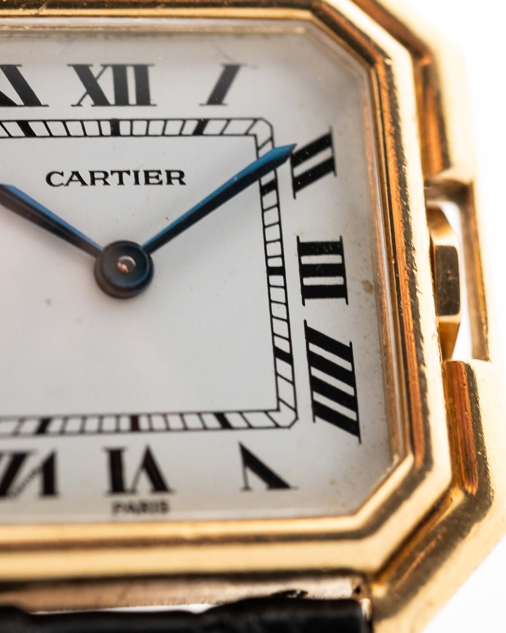 Mit ihrem Gehäuse aus massivem 18 Karat Gelbgold präsentiert sich die Uhr wunderschön, mit klaren Oberflächen und starken Linien. Gepaart mit dem originalen Cartier Armband und der passenden Goldschließe (sowie einem zusätzlichen Armband für das praktische Tragen), vereint dieses Stück Rarität, Eleganz und unverwechselbaren Pariser Charme.