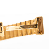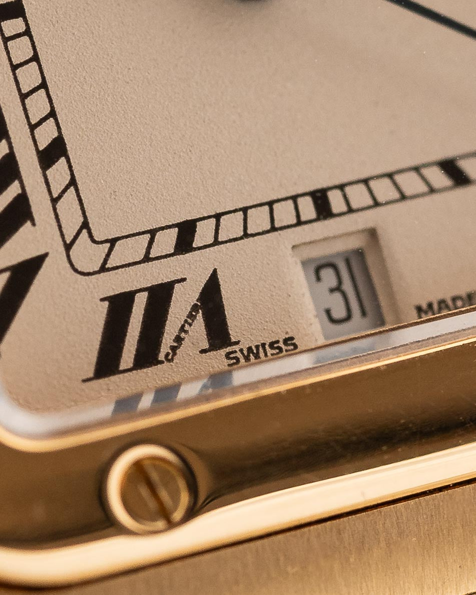 Das Herzstück dieser raffinierten Uhr ist ein hochpräzises Quarzwerk, das für tadellose Genauigkeit und Zuverlässigkeit sorgt. In die Krone ist ein Saphir-Cabochon eingelassen, ein Markenzeichen für die Liebe zum Detail und die Handwerkskunst von Cartier.