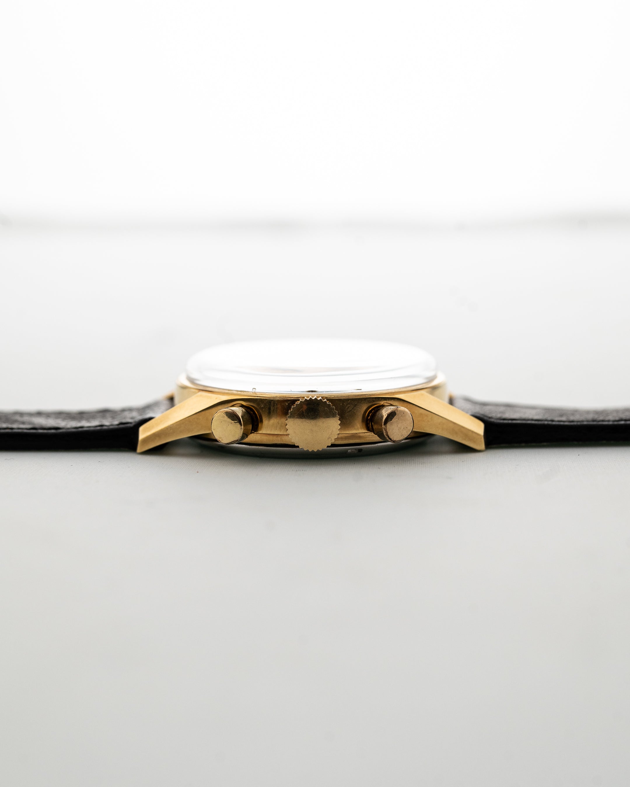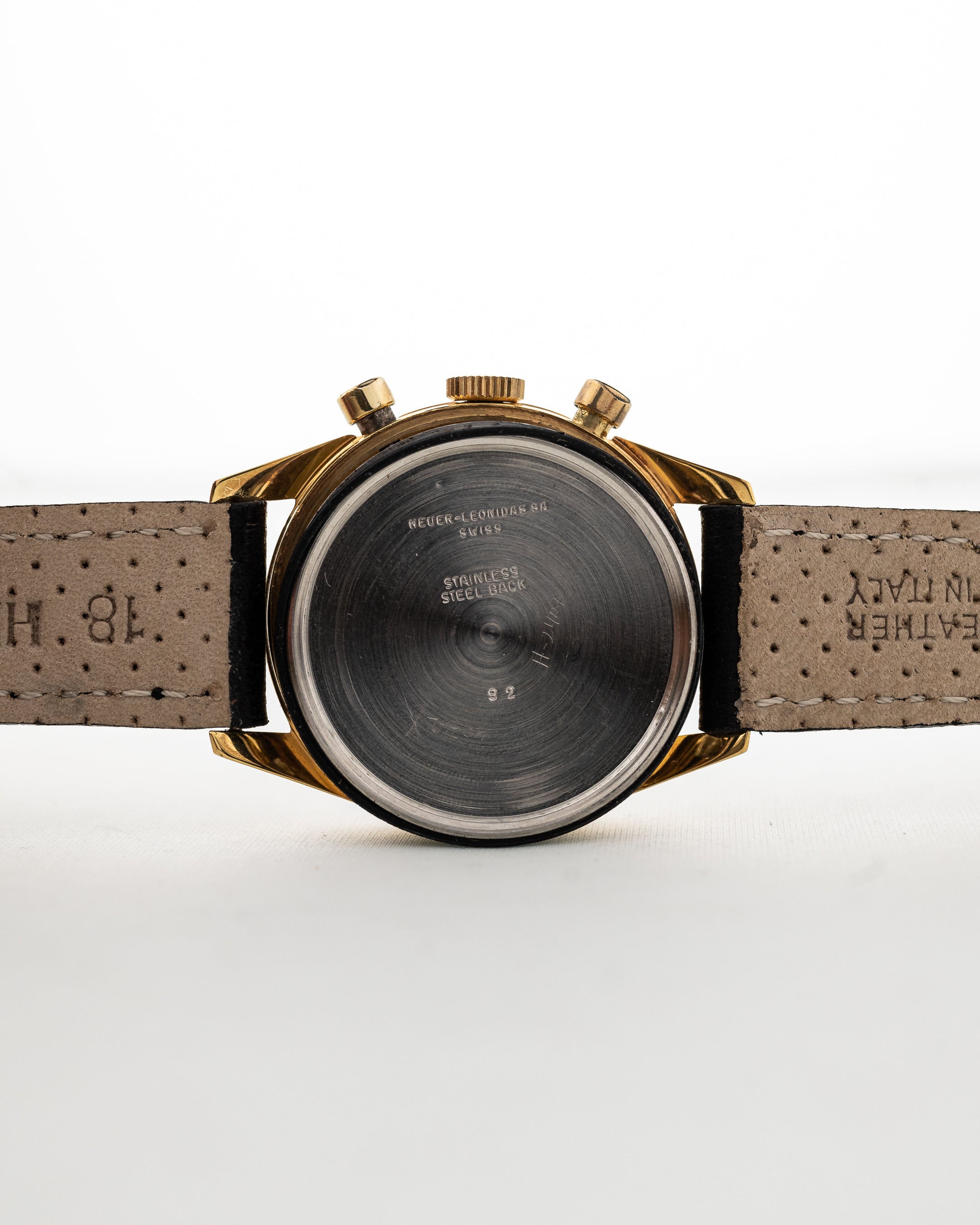 Im Gegensatz zu vielen anderen Kultuhren war die Carrera ein sofortiger Erfolg. Ihr einfaches, klares Design hat den Geist des Motorsports in den 1960er Jahren eingefangen. Die Referenz 3648N ist ein wunderbares Beispiel dafür, was die Carrera ausmacht - ein schwarzes Zifferblatt mit zwei Registern in makellosem Zustand, das viel Liebe zum Detail zeigt. Natürlich gibt es auch das berühmte Carrera-Gehäuse mit seinen aggressiv abgewinkelten Bandanstößen und einem wunderschönen Golddeckel.