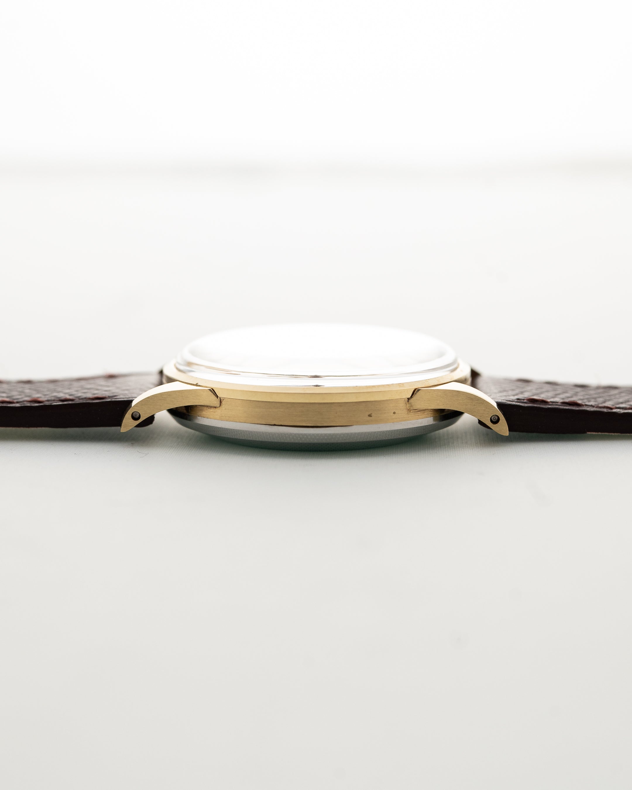 IWC hat schon früh eine breite Palette von Armbanduhren hergestellt, die von Kleideruhren bis hin zu Fliegeruhren reicht. Dieses Exemplar mit einem Goldgehäuse in atemberaubendem Zustand und wunderschön gestalteten Gelbgoldmarkierungen würde in jeder Sammlung einen festen Platz finden.