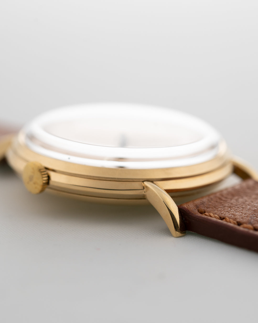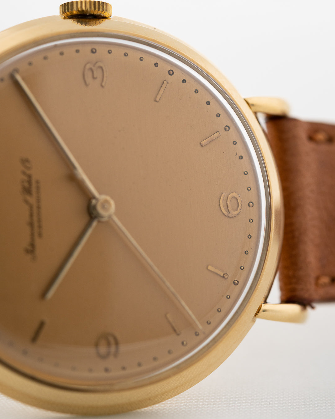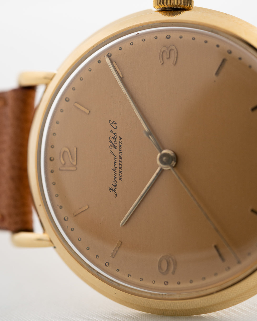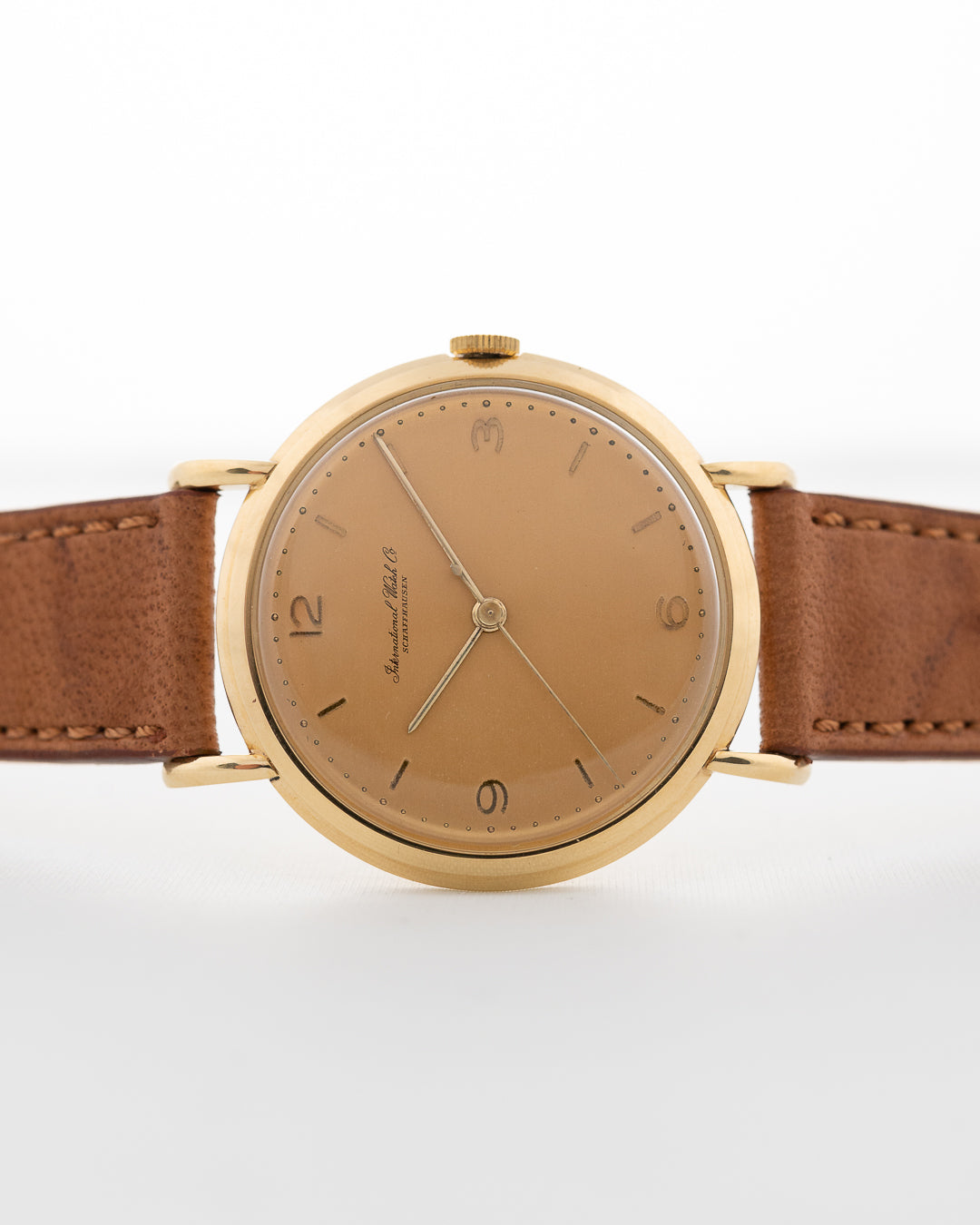 IWC hat schon früh eine breite Palette von Armbanduhren hergestellt, die von Kleideruhren bis hin zu Fliegeruhren reicht. Dieses Exemplar aus 18 Karat Roségold mit Spider Lugs ist eine Konstante in jeder Sammlung, zumal es nie getragen wurde und sich in einem nahezu NOS-Zustand befindet.