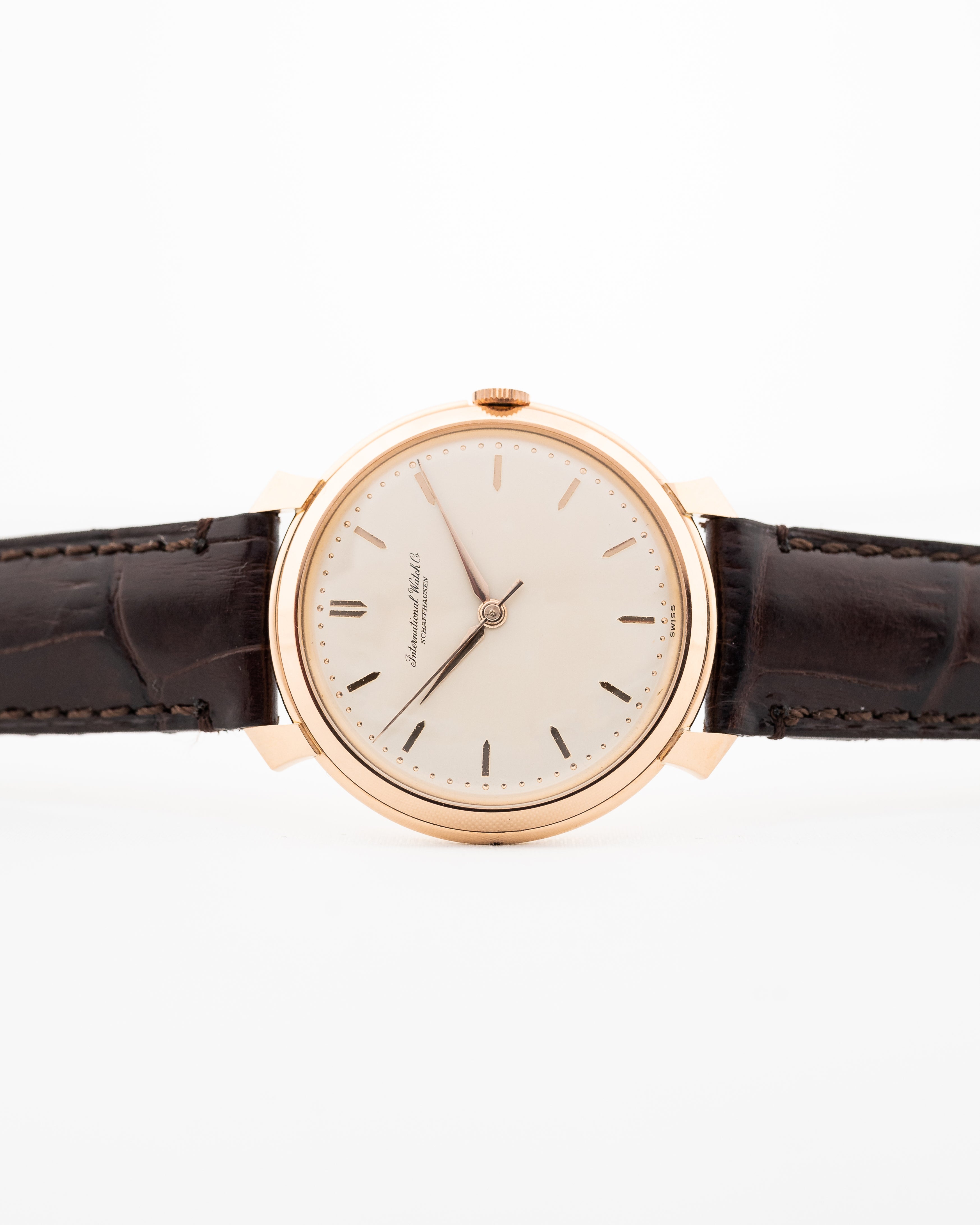 IWC hat schon früh eine breite Palette von Armbanduhren hergestellt, die von Kleideruhren bis hin zu Fliegeruhren reicht. Dieses Exemplar aus 18 Karat Roségold mit Haifischflossen-Anhängern sollte in keiner Sammlung fehlen, zumal es mit wunderschönen Haifischflossen-Anhängern ausgestattet ist.