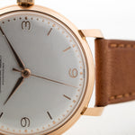 IWC hat schon früh eine breite Palette von Armbanduhren hergestellt, die von Kleideruhren bis hin zu Fliegeruhren reicht. Dieses Exemplar aus 18 Karat Roségold mit Haifischflossen-Anhängern sollte in keiner Sammlung fehlen, zumal es im NOS-Zustand und mit den Originalpapieren geliefert wird.