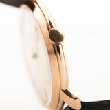 IWC hat schon früh eine breite Palette von Armbanduhren hergestellt, die von Kleideruhren bis hin zu Fliegeruhren reicht. Dieses Exemplar in 18 Karat Roségold mit seinem weiß-cremefarbenen Zifferblatt sollte in keiner Sammlung fehlen, zumal es mit schönen Haifischflossen-Anhängern ausgestattet ist.