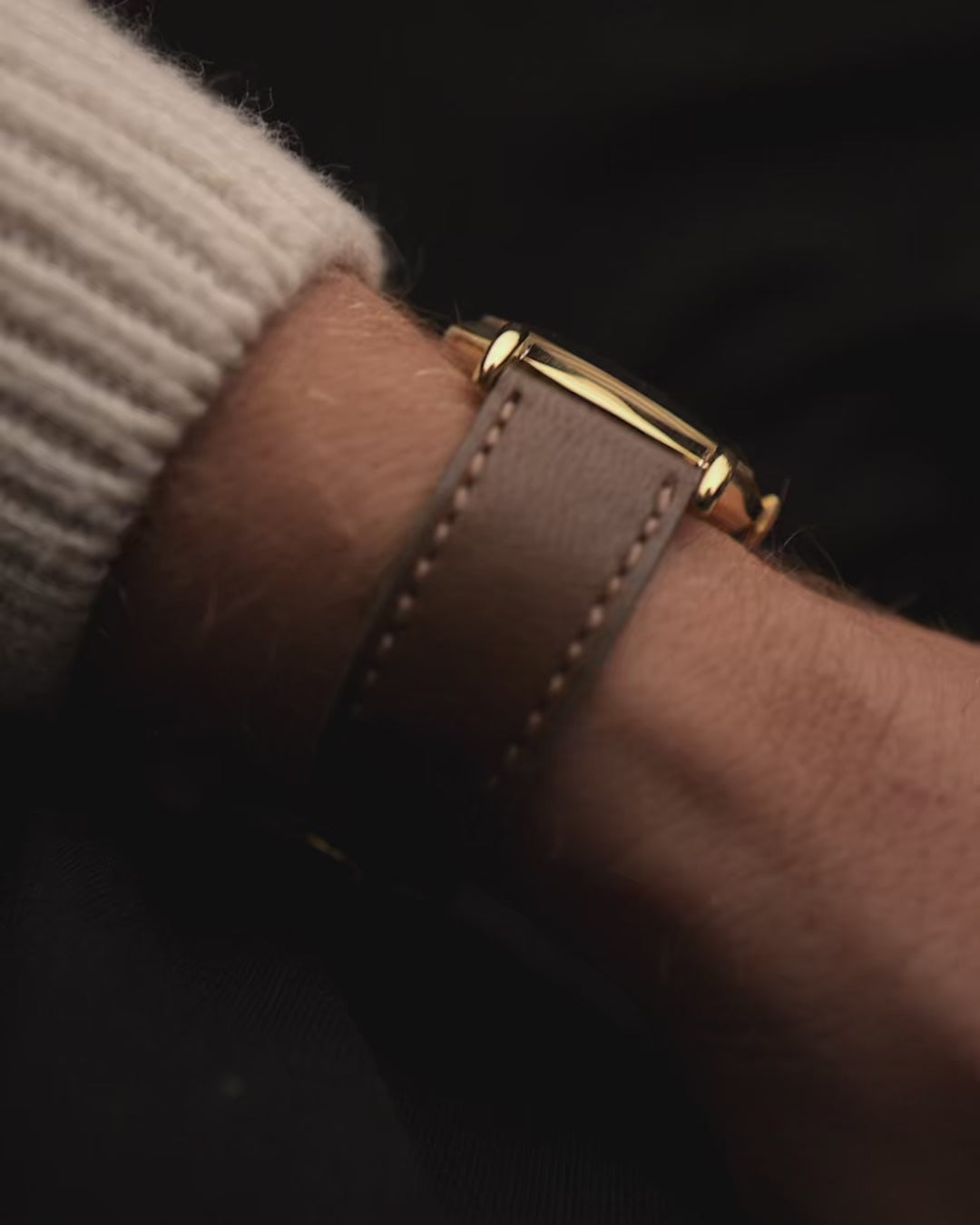 Das karamellfarbene Zifferblatt ist eine Lektion in Sachen Ausgewogenheit und Reinheit - unberührt und sauber, mit warmen Tönen und goldenen Zeigern und passenden Stundenmarkierungen. Hier gibt es kein Durcheinander - nur Eleganz, perfekt erhalten.