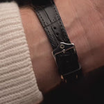 Das KARDINAL Armband mit Alligatorprägung besteht aus feinstem, lokal bezogenem Kalbsleder und hat eine wunderschöne Textur, ohne dass exotische Häute verwendet werden. Inspiriert von den Uhrenarmbändern der 1950er und 1960er Jahre, ist es ultradünn (2 mm), perfekt verjüngt und vom ersten Tag an bequem.