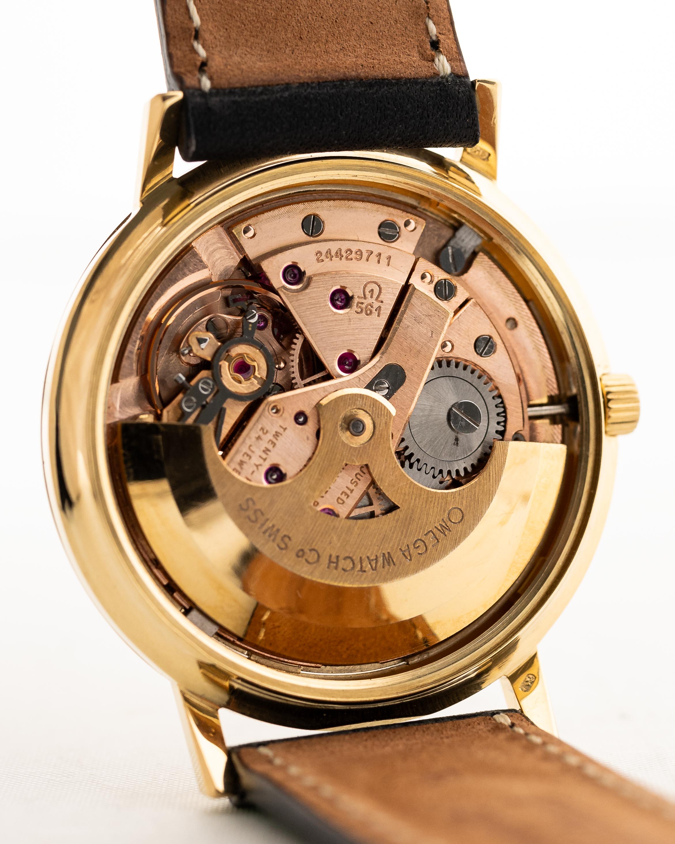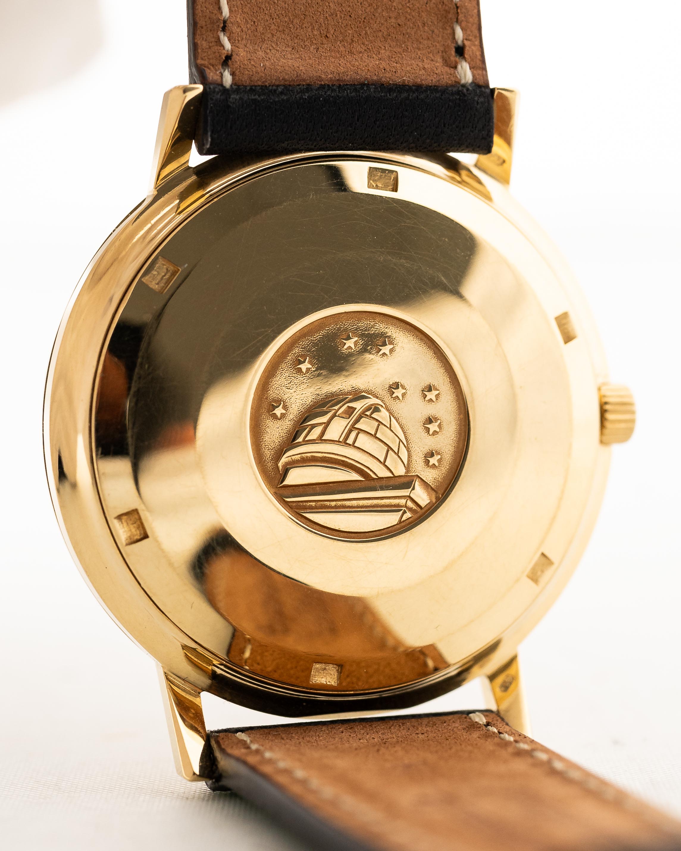 Diese gut proportionierte, schlichte und klassische Constellation verfügt über einen verschraubten Gehäuseboden, das Omega Automatik-Chronometer Kaliber 561 und großartige, leicht angewinkelte Anstöße.