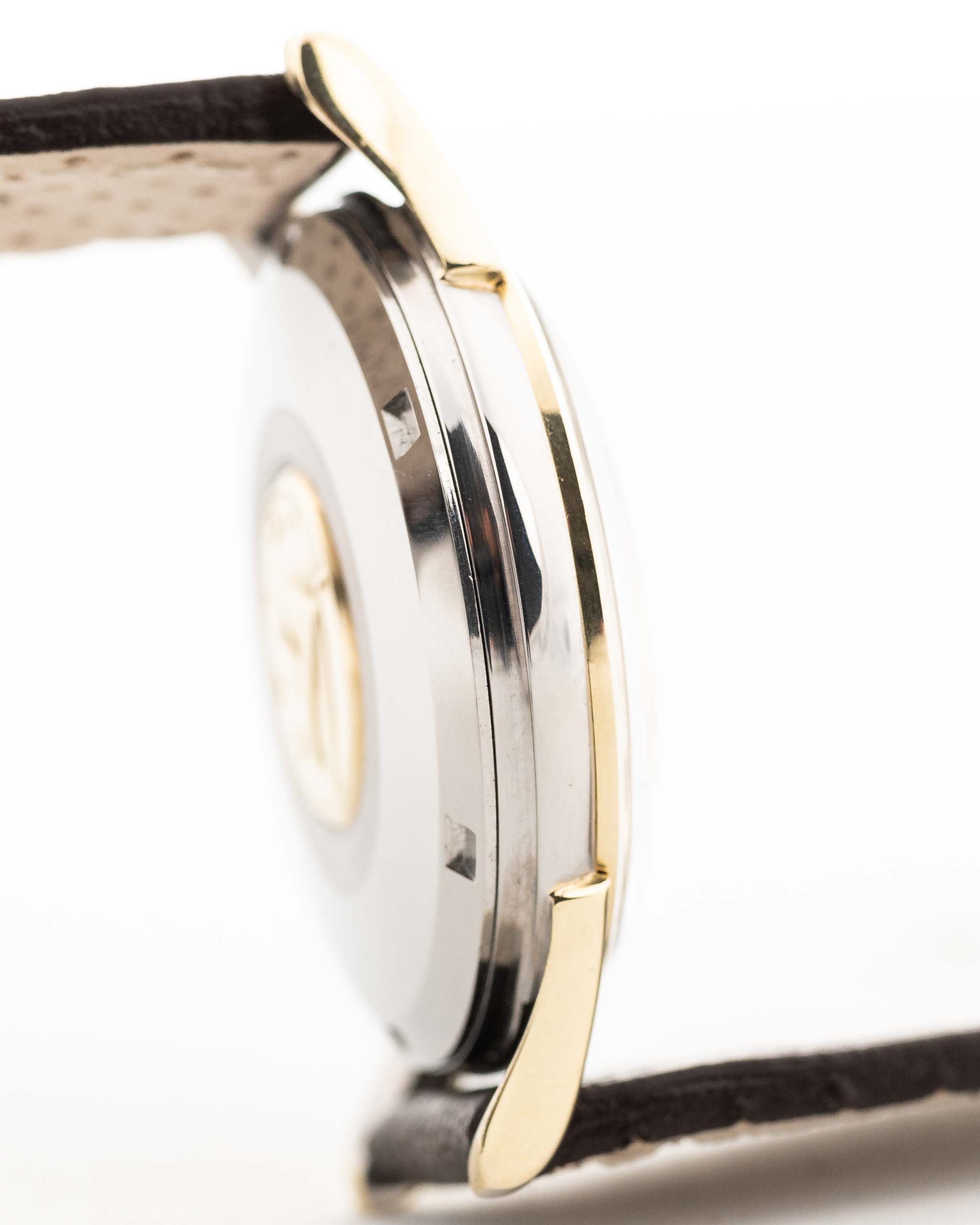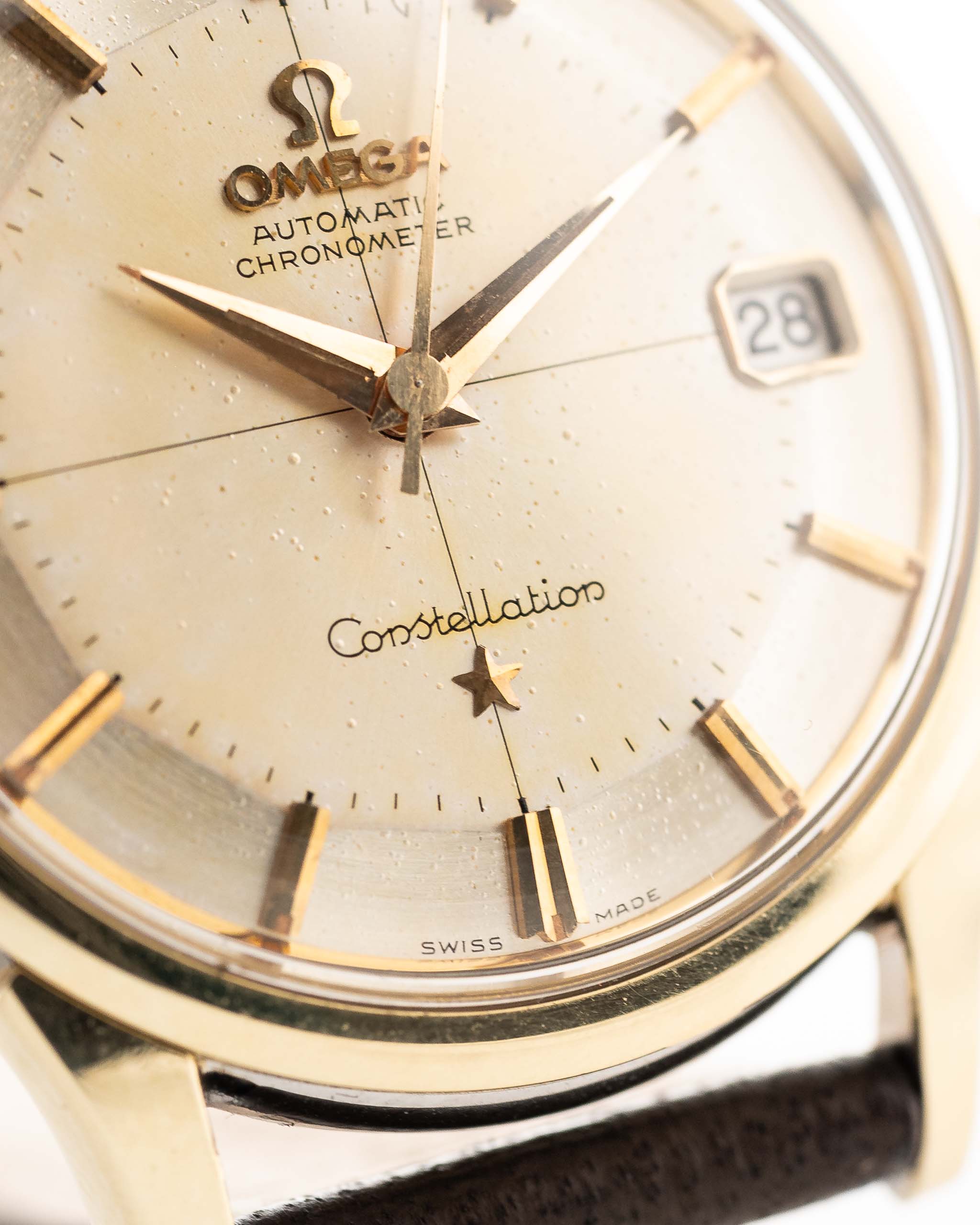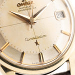 Diese gut proportionierte, schlichte und klassische Constellation verfügt über einen verschraubten Gehäuseboden, das Omega Automatik-Chronometer Kaliber 561 und großartige, leicht nach unten gedrehte Anstöße.