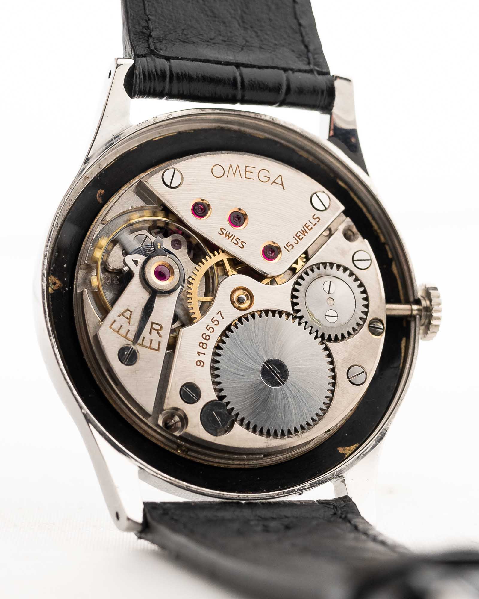 Das Zifferblatt befindet sich in ausgezeichnetem Zustand, ist original und unberührt und weist lediglich eine leichte, authentische Patina auf, die seinen Vintage-Charakter unterstreicht. Im Inneren befindet sich das legendäre Omega Cal. 30T2, ein Handaufzugswerk, das für seine Robustheit und Langlebigkeit bekannt ist.