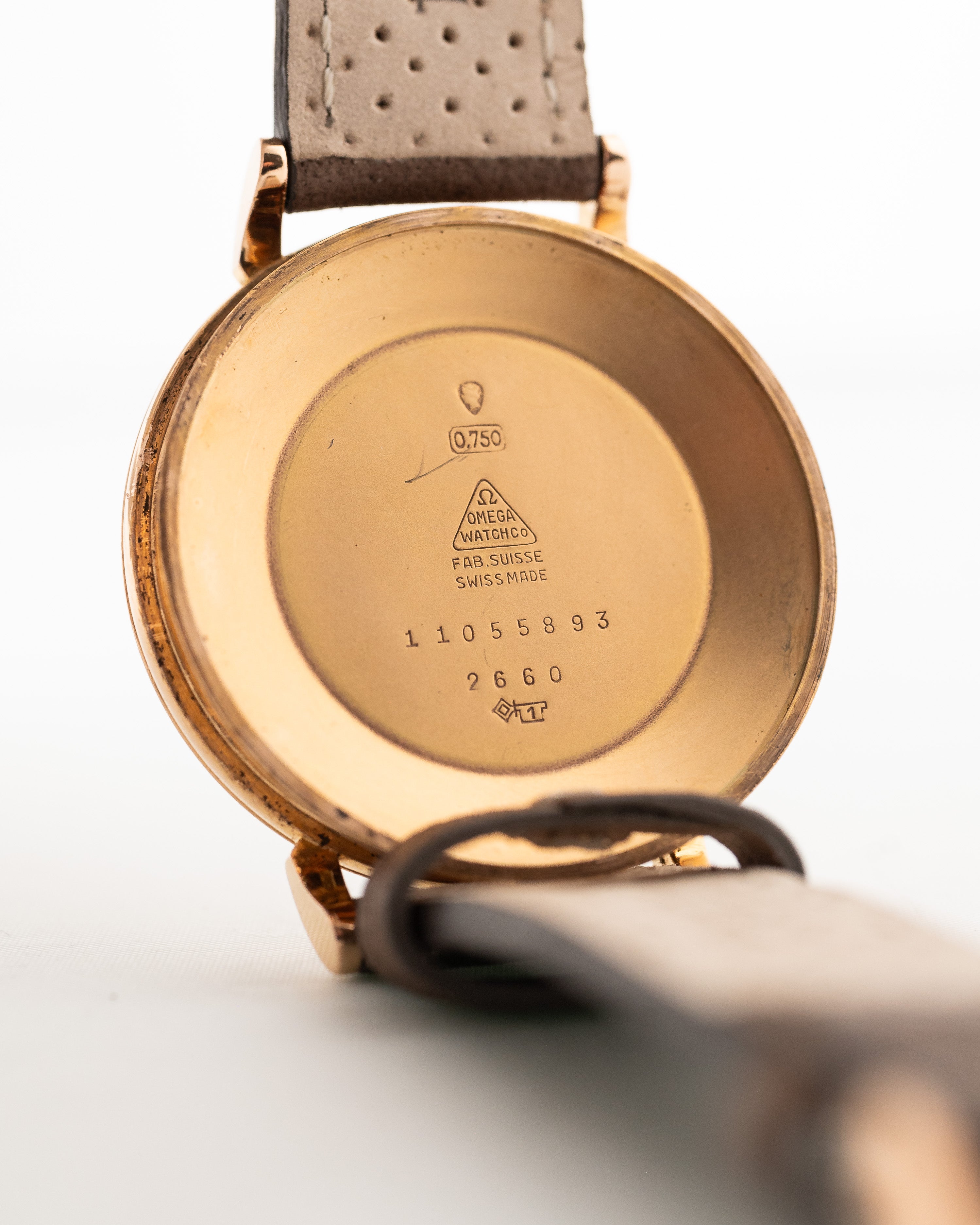 Die 1950er Jahre waren eine gute Zeit für Omega, wie diese schöne Armbanduhr beweist. Dieses Exemplar sieht nicht nur gut aus, sondern ist auch sehr robust. Ausgestattet mit einem riesigen 37,5-mm-Gehäuse aus Roségold, nach unten gedrehten Bandanstößen und einem wunderschönen, zweifarbigen Zifferblatt in Weiß und Grau, ist diese Uhr wirklich unschlagbar.