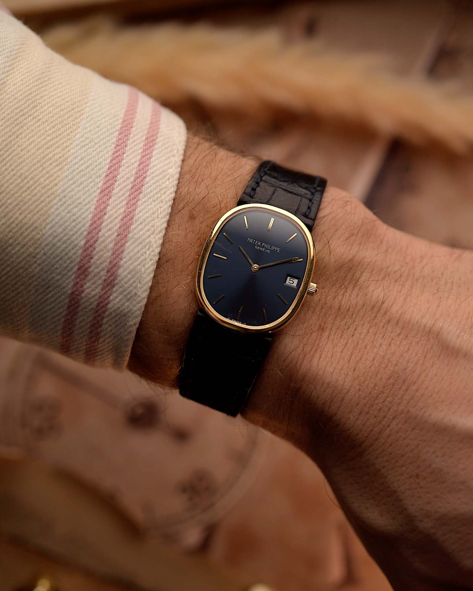 Patek Philippe 3788J Golden Ellipse – Blaue Sunburst-Eleganz (1980er Jahre)