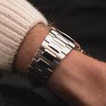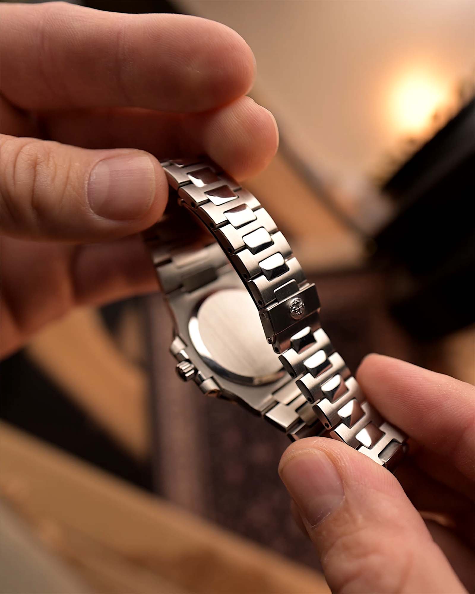 • Original Patek Philippe Edelstahlarmband mit leichter Dehnung passt bis zu einem Handgelenkumfang von 20 cm / 3 mm Dicke