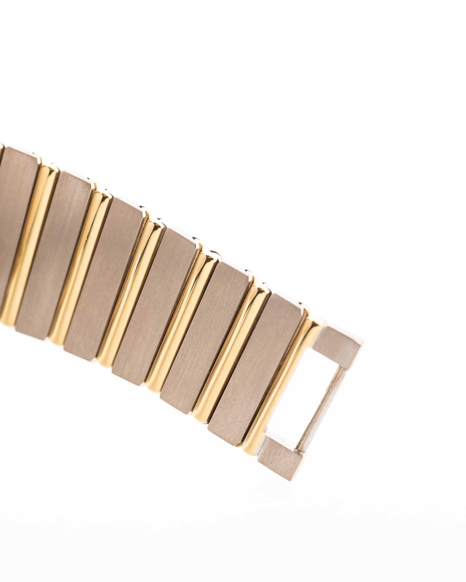 - Das originale integrierte Armband von Piaget aus 18 Karat Weiß-/Gelbgold ist für Handgelenkgrößen bis zu 18 cm geeignet (durch Entfernen von Gliedern verstellbar) / 3 mm dick.