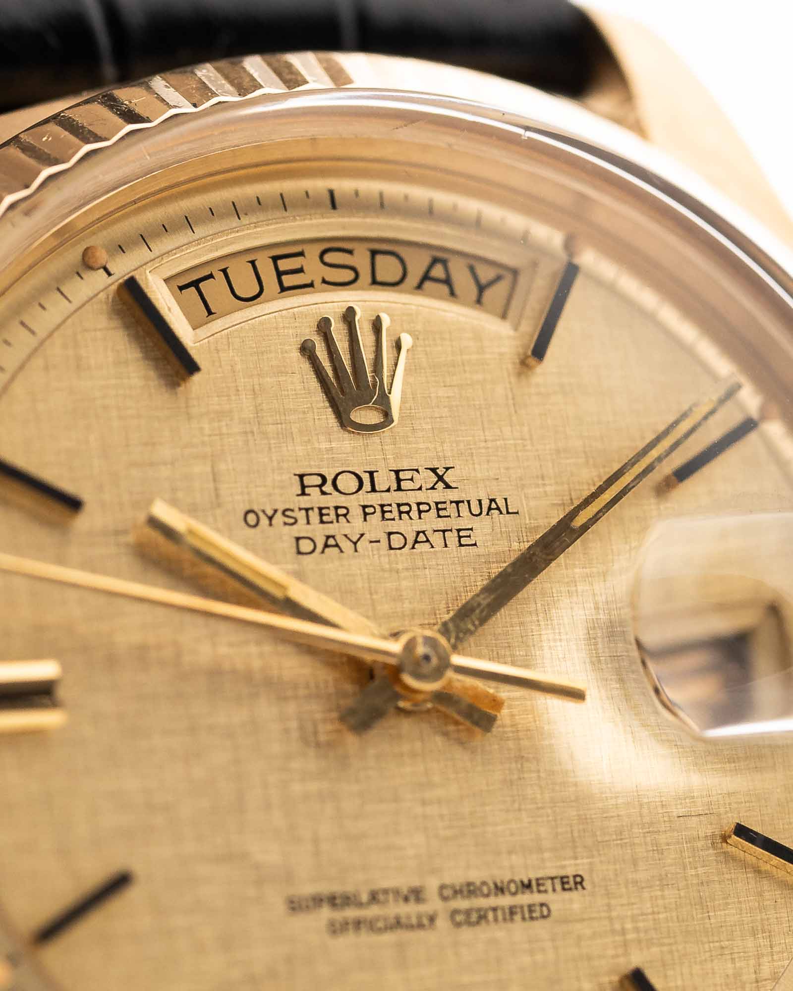 Rolex Day-Date 1803 Leinen-Zifferblatt 1973 - Eine zeitlose Ikone mit einem seltenen Zifferblatt und unverwechselbarer Präsenz.
