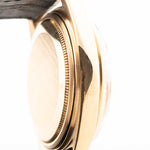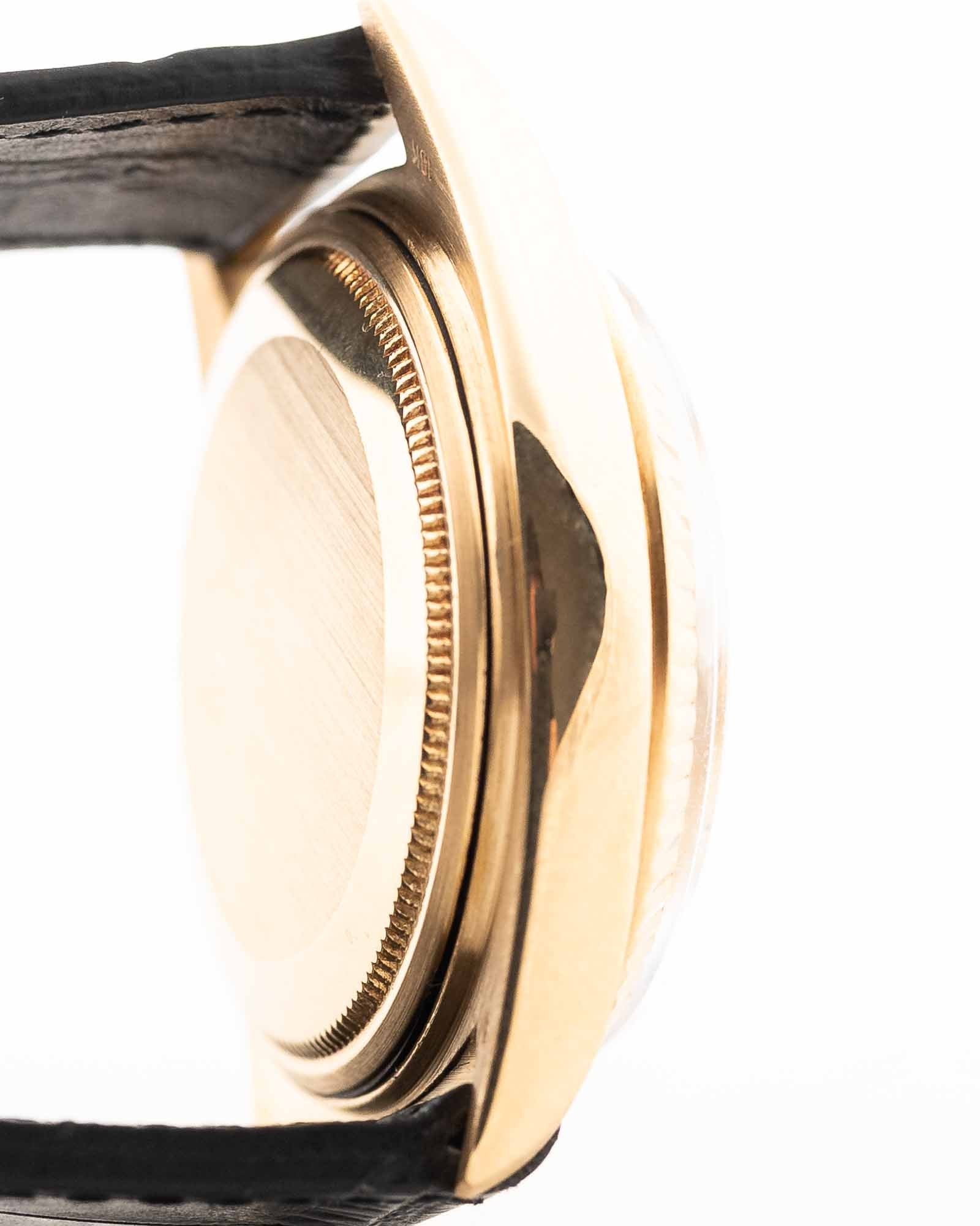 Die Rolex Day-Date steht an der Spitze der Vintage-Eleganz – und diese Referenz 1803 aus dem Jahr 1973 ist ein besonders faszinierendes Exemplar. Dieses Modell mit einem Gehäuse aus massivem 18 Karat Gelbgold kombiniert die klassischen Proportionen der Day-Date mit einem der begehrtesten Zifferblätter dieser Zeit: einem goldenen Zifferblatt mit Leinenstruktur. Seine strukturierte Oberfläche fängt das Licht auf wunderschöne Weise ein und verleiht der Uhr einen raffinierten Charakter, der sie von Standardkonfigurationen abhebt.
