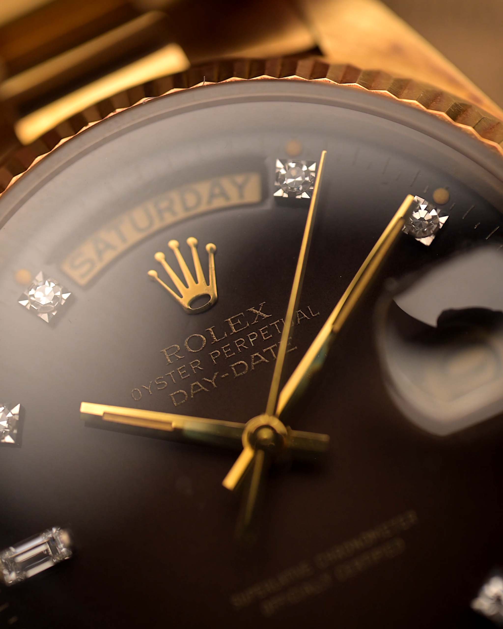 Rolex Day-Date 18038, Braunes Diamant-Zifferblatt mit Vignette, 1981 - Die Uhr des Präsidenten - Macht, Prestige und Patina