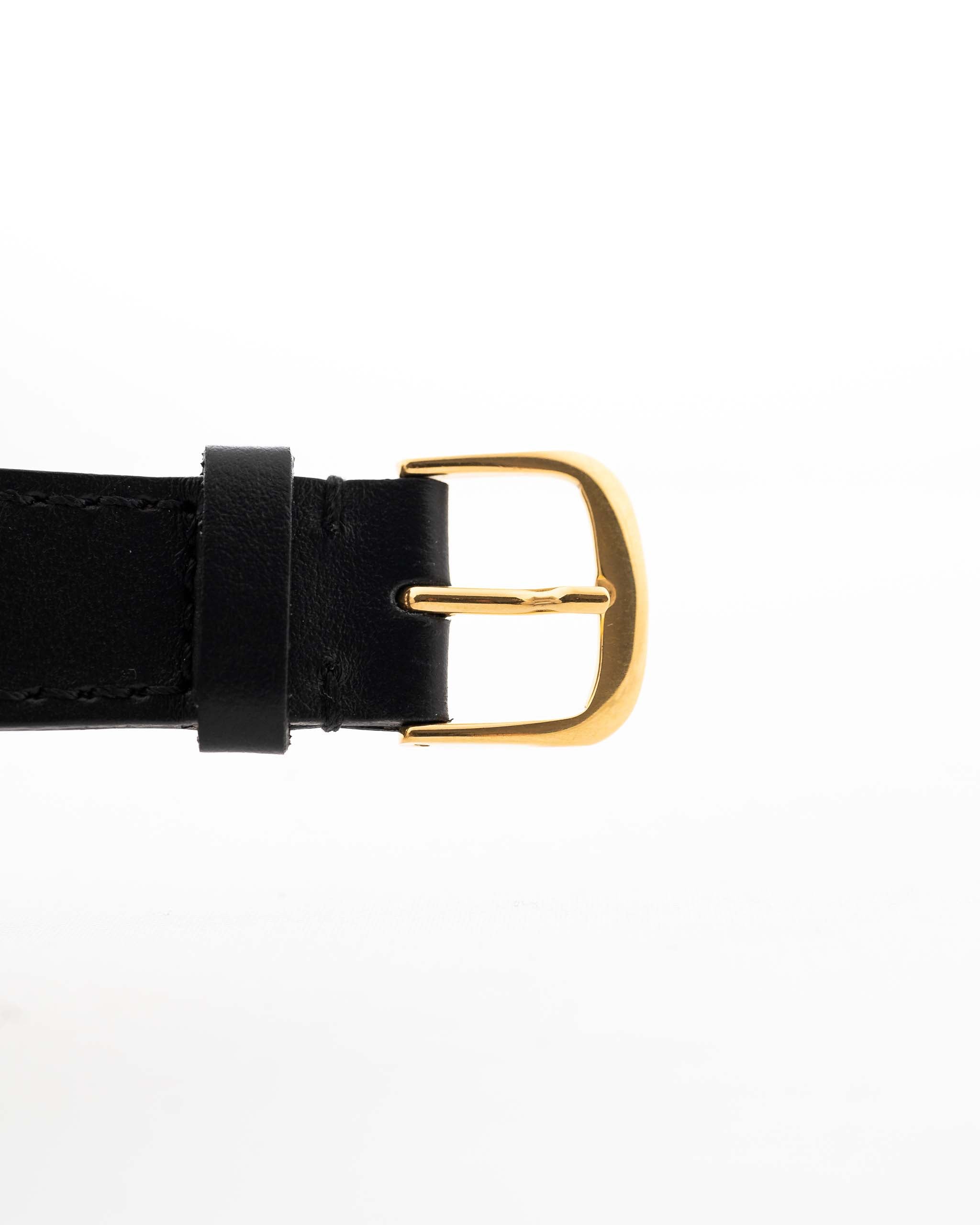 Das graue Zifferblatt, komplett original und nie retuschiert, passt wunderbar zu dem warmen Goldgehäuse und verleiht der Uhr eine raffinierte, unaufdringliche Präsenz am Handgelenk. Die Größe von 36 mm wirkt modern und ausgewogen, insbesondere angesichts der perfekt runden Silhouette.