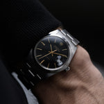 Die Rolex Oysterdate Precision ist eine echte Geheimtipp-Uhr. Sie wurde als 6694 in den frühen 60er Jahren eingeführt und bis in die späten 80er Jahre hergestellt. Und ästhetisch ist diese Rolex zeitlos und wunderschön mit 35 mm, aber sie trägt sich größer. Sie hat einen stilvollen, eleganten Look, der für den Tennisplatz, ein Geschäftstreffen oder jede Menge zwangloser Anlässe geeignet scheint.