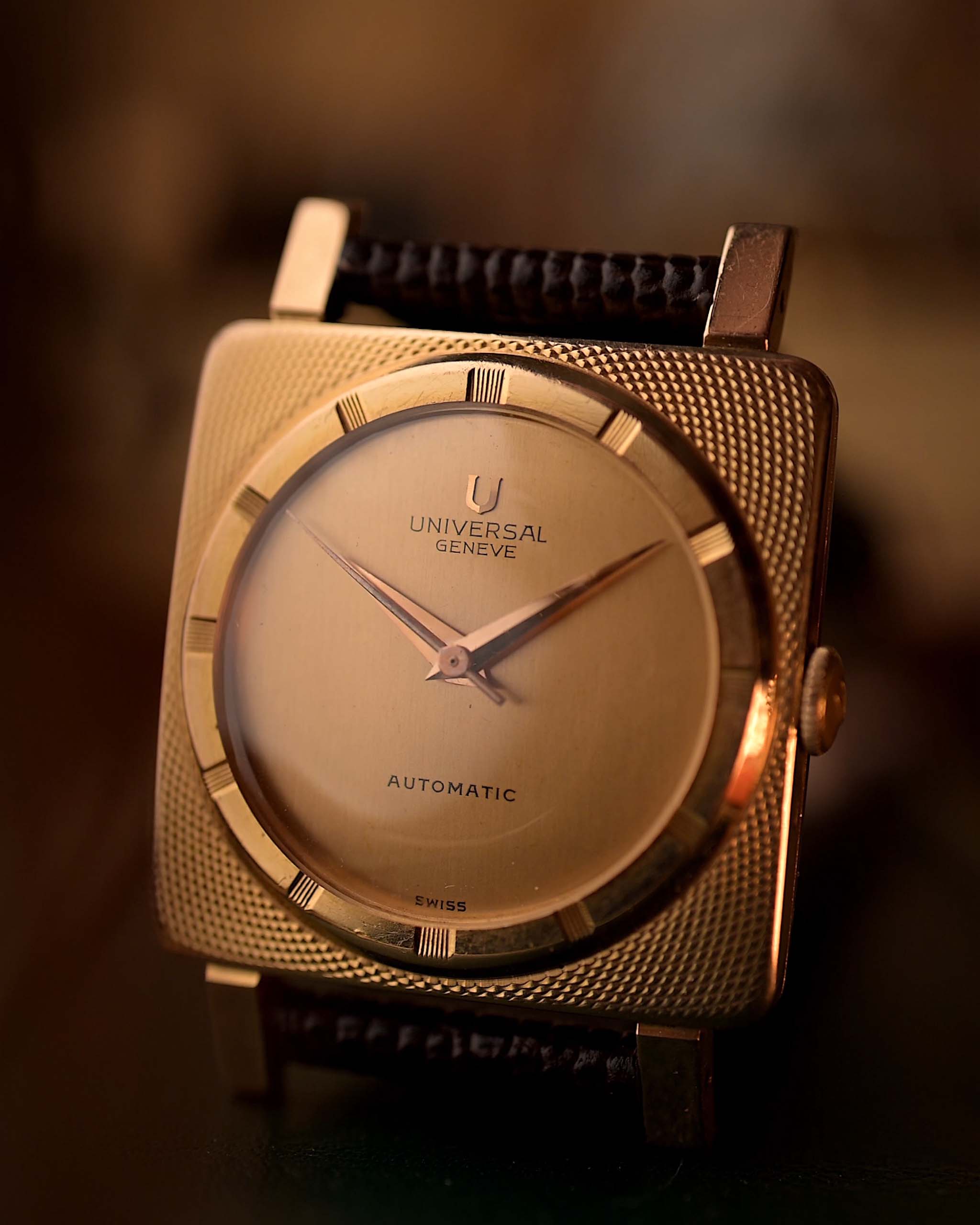 Wenn Sie eine Vintage Universal Genève tragen, signalisieren Sie damit etwas Seltenes: anspruchsvollen Geschmack. Sie sind nicht auf der Jagd nach Status. Sie bewahren das Erbe. Sie wissen, dass die wahre Schönheit in den Details liegt - abgeschrägte Bandanstöße, elegante Proportionen, mit Sorgfalt gefertigte Uhrwerke.