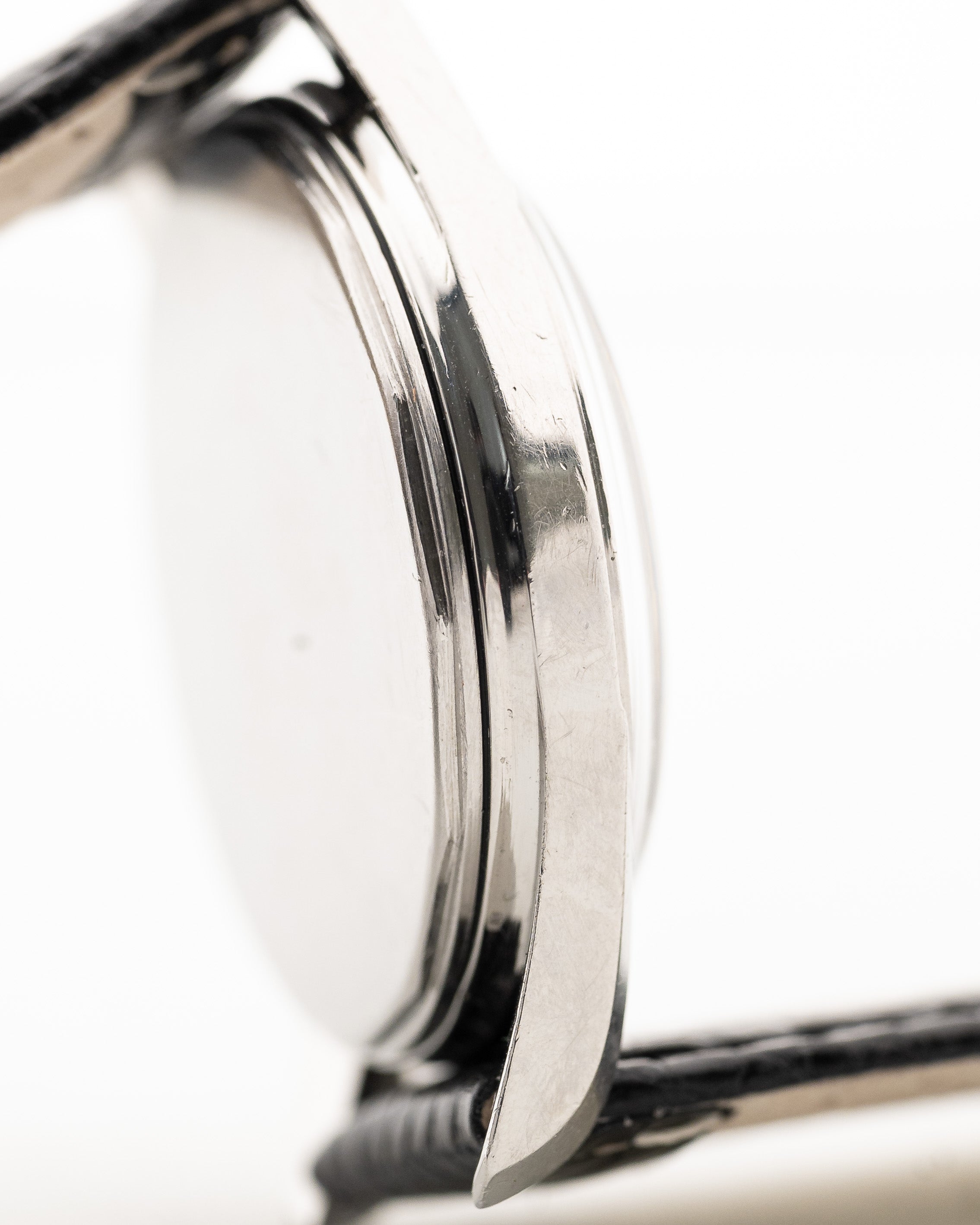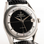 Die Version, die Sie hier sehen, ist aus Edelstahl mit einem atemberaubenden schwarzen Zifferblatt in gutem Zustand und einem verspiegelten Stahlkapitellring. Insgesamt ist dies eine wunderschön gestaltete Uhr mit einer reichen Luftfahrtgeschichte und einem beeindruckenden Mikrotorwerk.
