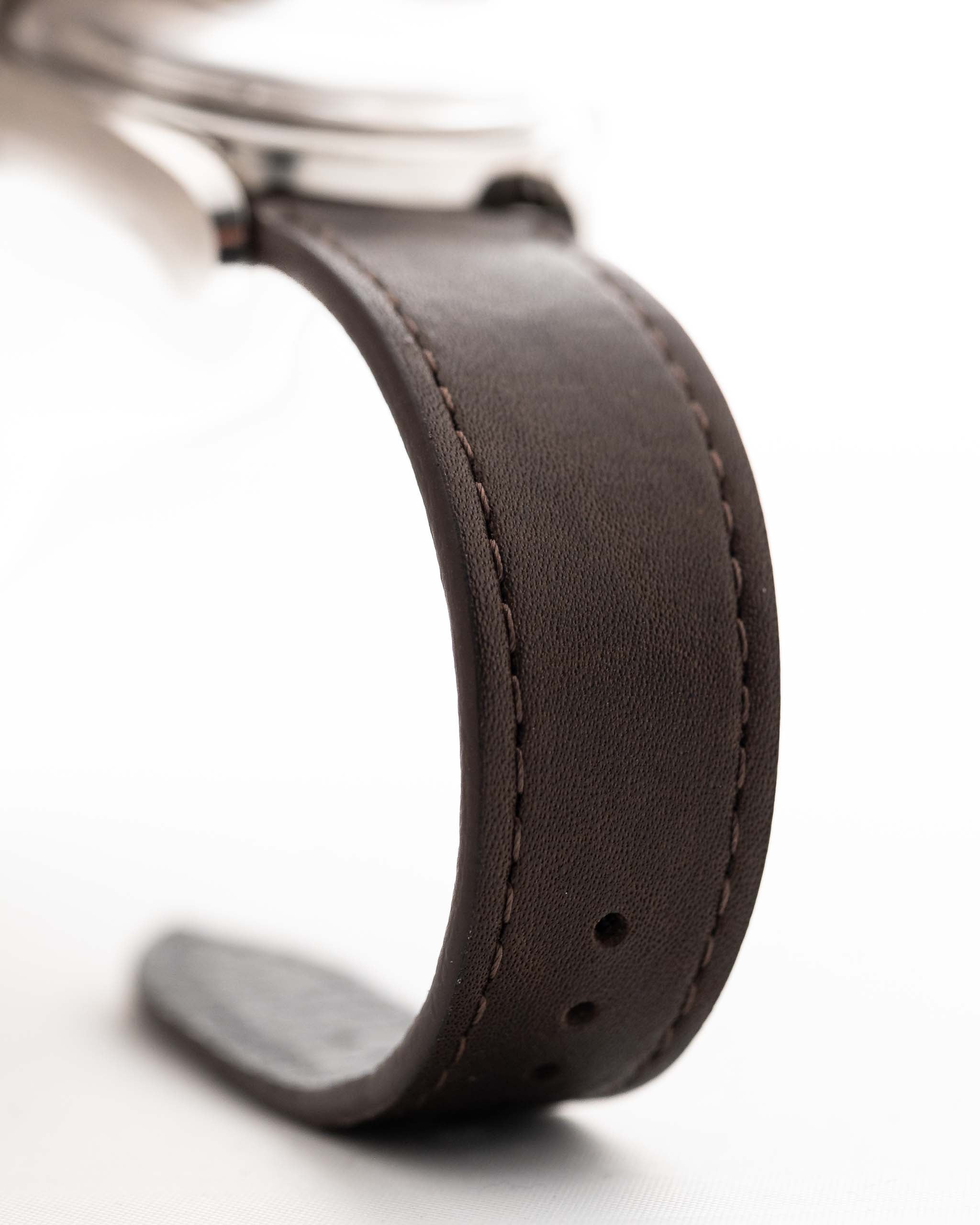 Our example, powered by the legendary Microtor Caliber 215, captures everything that makes the Polerouter iconic: technical elegance, aviation heritage, and bold design. The dial has aged beautifully into a warm tropical brown, adding stunning depth to the crosshair layout and steel chapter ring. It’s a watch that feels alive with history.