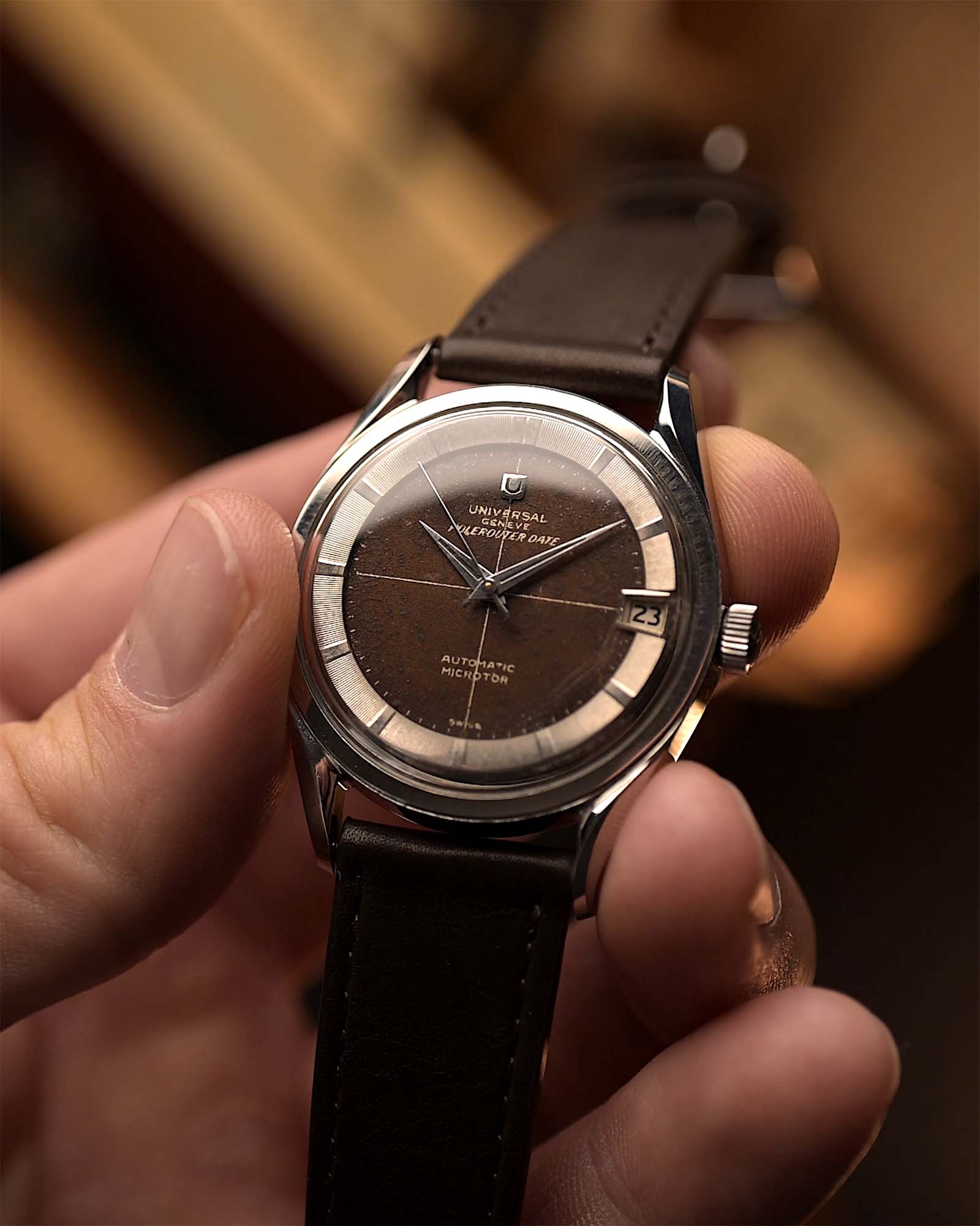 The case has been carefully polished to original Universal Genève factory specs, preserving its sharp, sculptural lines. Altogether, this is more than just a watch — it’s a design milestone from one of horology’s greatest minds, and a standout collector’s piece.