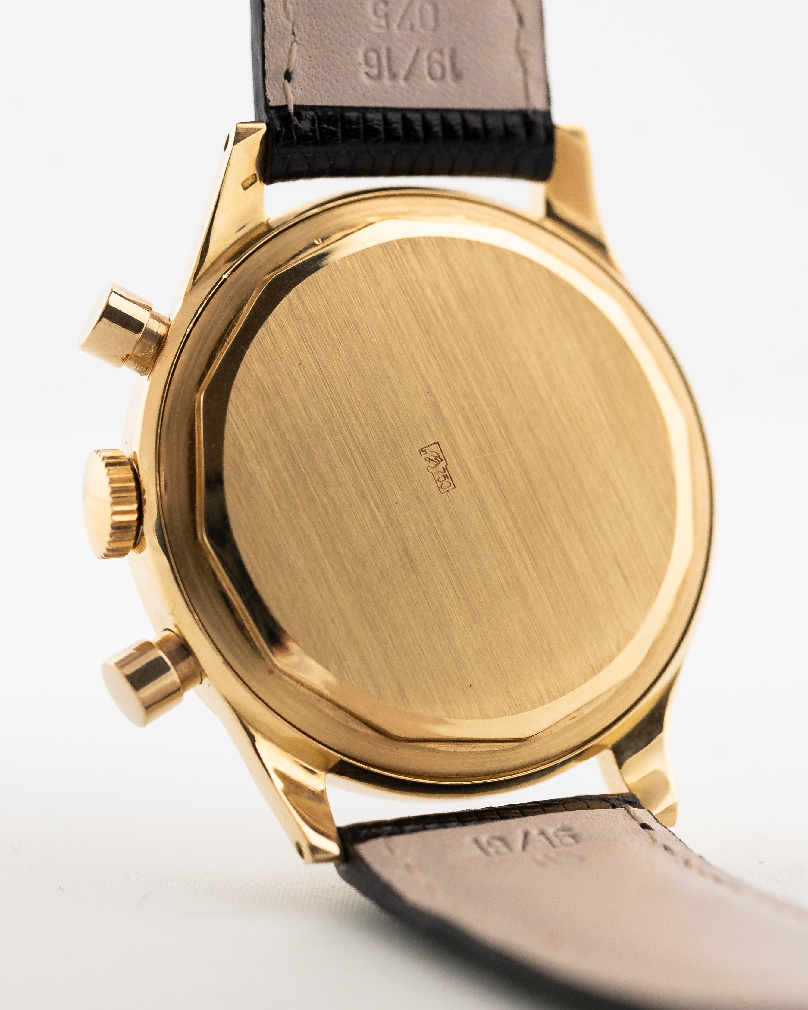 Diese Universal Geneve Uni-Compax ist ein fantastisches Beispiel dafür, was der Hersteller in den 1940er Jahren so gut gemacht hat. Das Jumbo-Gehäuse aus 18 Karat Gelbgold mit runden Drückern beherbergt das begehrte Uhrwerk Kaliber 285.