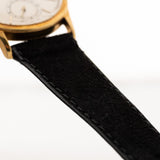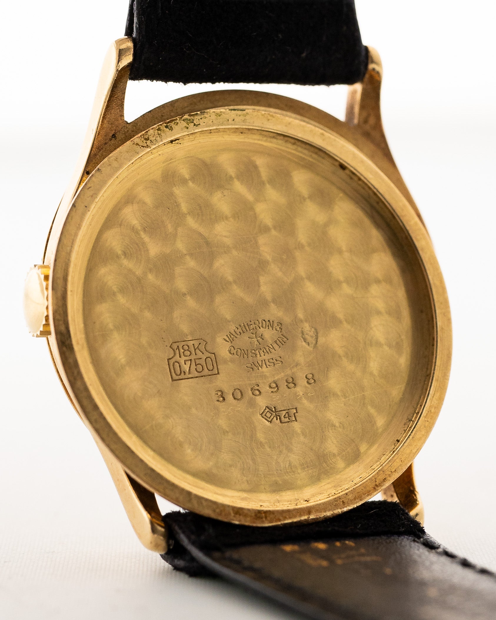 Dieses besondere Stück zeichnet sich durch seinen guten Zustand, ein stabiles Gehäuse aus 18k Gelbgold und schön angeordnete goldene römische Ziffern bei 3, 9 und 12 Uhr aus.
