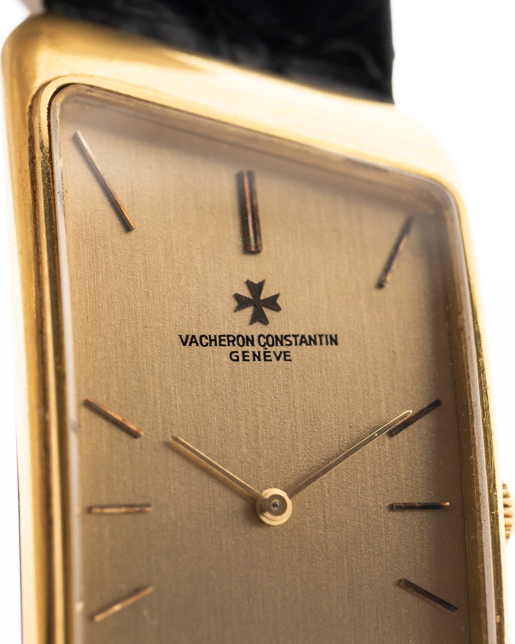 The golden dial with applied gold indexes offers a calm and harmonious appearance, complemented by a finely matched original VC leather strap that enhances its understated charm.