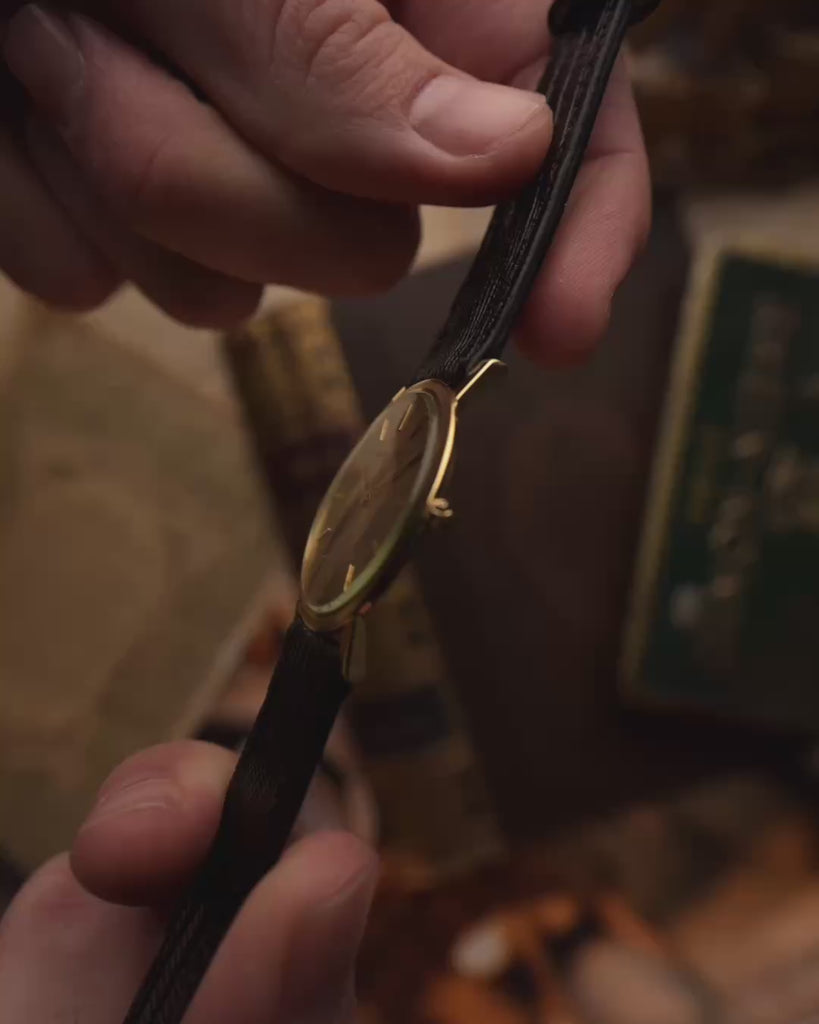 Goldene Vintage-Uhr von Audemars Piguet, die sanft mit beiden Händen gehalten wird.