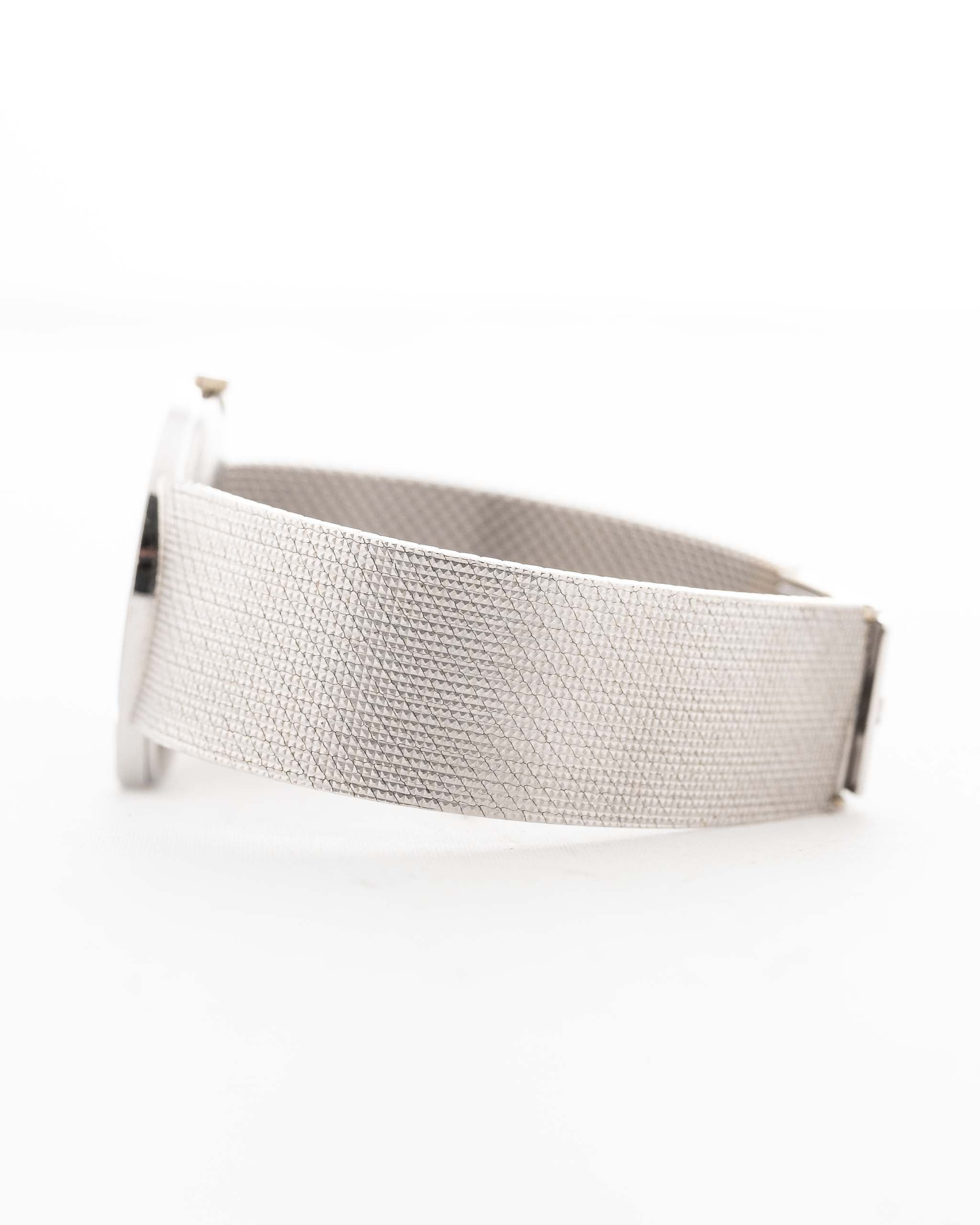 Eine der seltensten und auffälligsten Vacheron Constantin-Anzuguhren der 1970er Jahre, die nur selten auf dem Markt zu finden ist. Das markante 31-mm-Gehäuse aus 18 Karat Weißgold ist mit einem integriertenWeißgoldarmband kombiniert, das sowohl optische Tiefe als auch außergewöhnlichen Tragekomfort bietet.