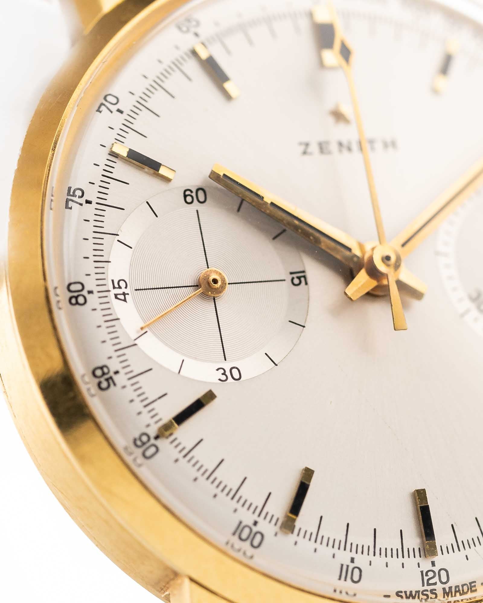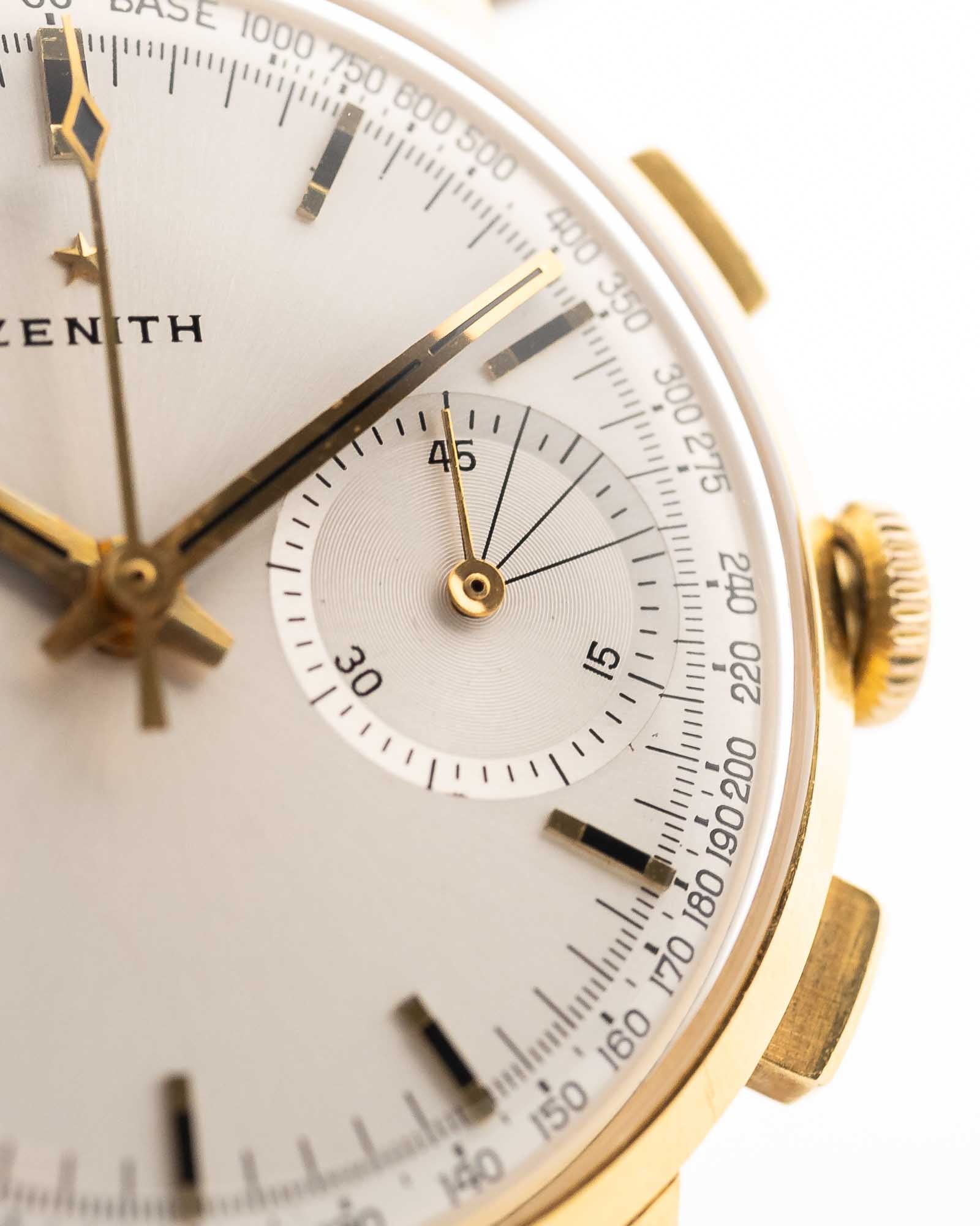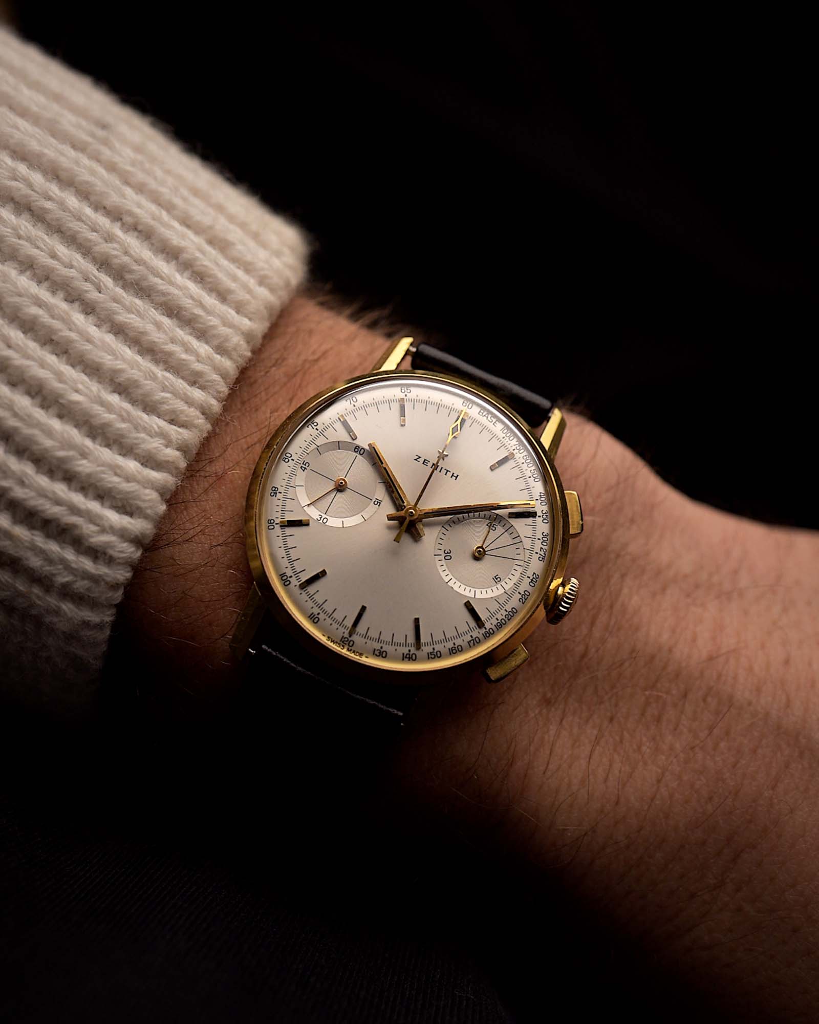 Unter Vintage Uhr genießt Zenith eine besondere Verehrung. Nicht nur wegen seiner Designs - die von klassisch zurückhaltend bis kühn avantgardistisch reichen - sondern auch wegen seiner legendären Uhrwerke. Das berühmteste von allen: das 1969 eingeführte El Primero, eines der ersten automatischen Chronographenkaliber überhaupt und immer noch eines der genauesten, das mit einer hohen Frequenz von 36.000 Halbschwingungen pro Stunde schlägt.