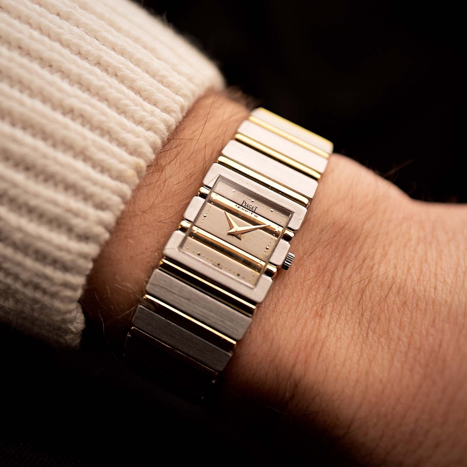 Caja. La caja de 36 mm es relativamente clásica. Tiene el mismo estilo de bisel que el Classic Gold pero sin las asas biseladas. Como todas las piezas LeCoultre de oro, las asas también son relativamente finas -como se ve en el perfil- en comparación con la altura total de la caja. Este modelo específico también existe con caja guilloché (véase más abajo), y otros anuncios/catálogos sugieren que algunos venían con brazaletes dorados texturizados.