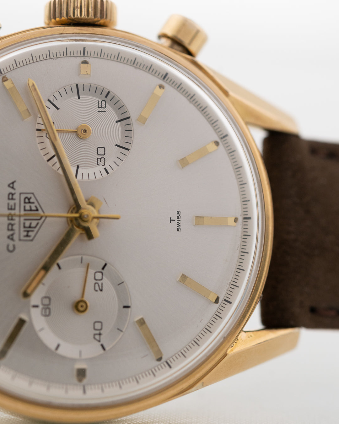 A diferencia de muchos relojes de culto, el Carrera fue un éxito inmediato, con un diseño sencillo y limpio que captó el espíritu de los deportes de motor en la década de 1960. La referencia 3648 es un maravilloso ejemplo de lo que hace al Carrera: una esfera plateada de dos registros en perfecto estado que muestra una gran atención al detalle. Por supuesto, también está la famosa caja Carrera con agresivas asas en ángulo y una hermosa caja con tapa de oro.
