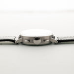 Esta belleza es un cronógrafo de dos registros con una impresionante esfera de esmoquin. Con un tamaño de 33 mm, la caja escalonada de acero inoxidable es limpia en su diseño. Presenta asas finas y pequeños pulsadores de cronógrafo de pastilla. Para su edad, el estado de la esfera es impecable.