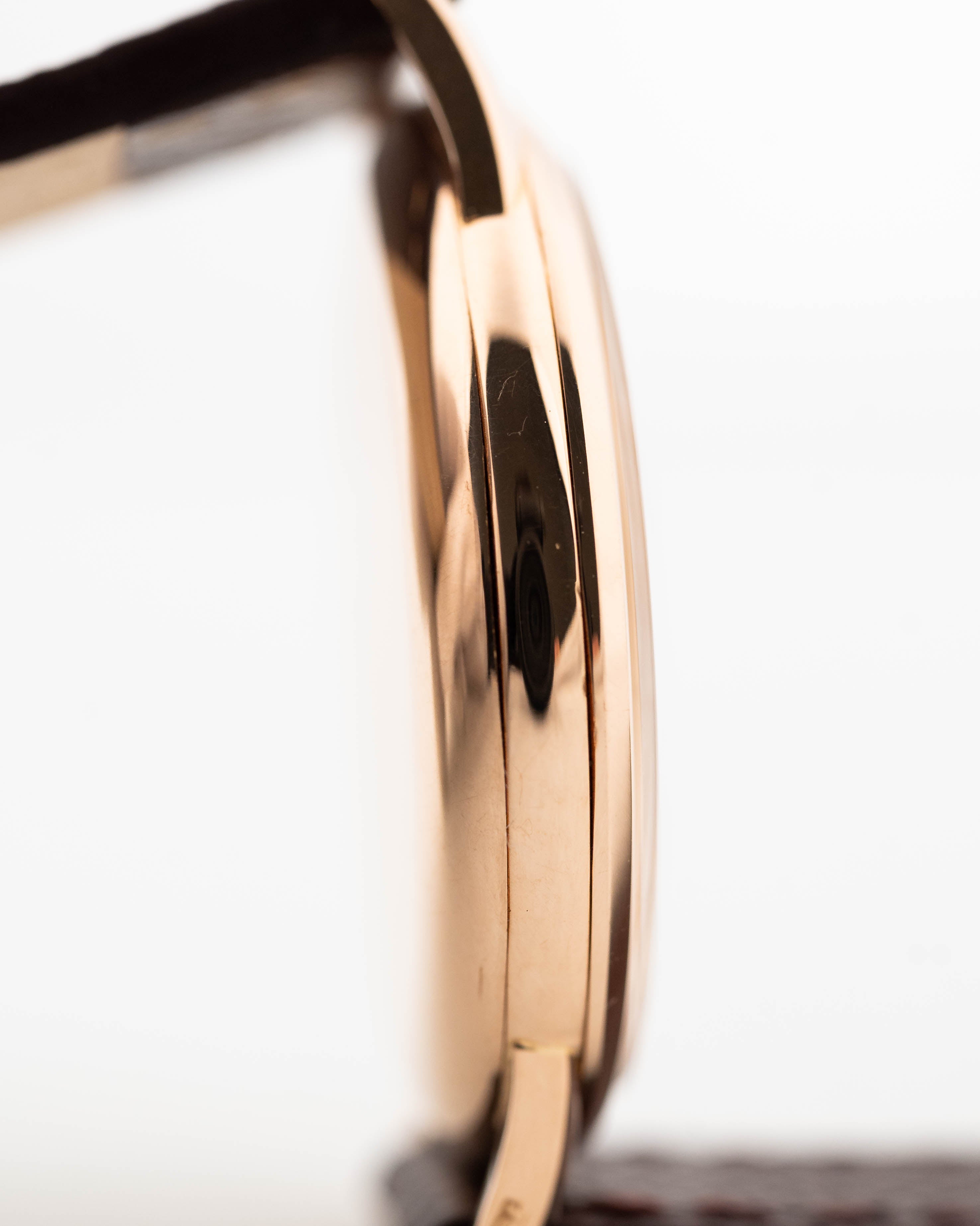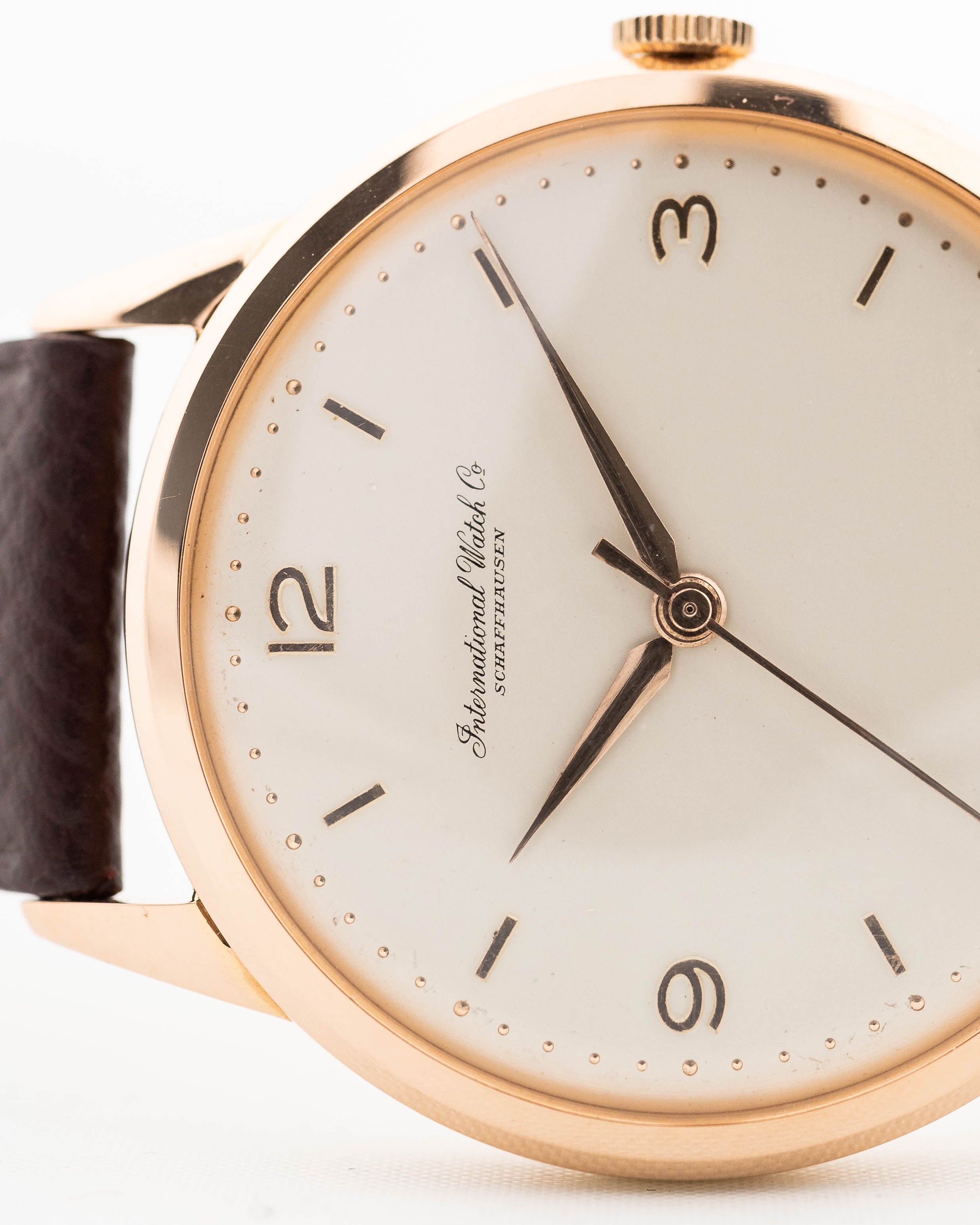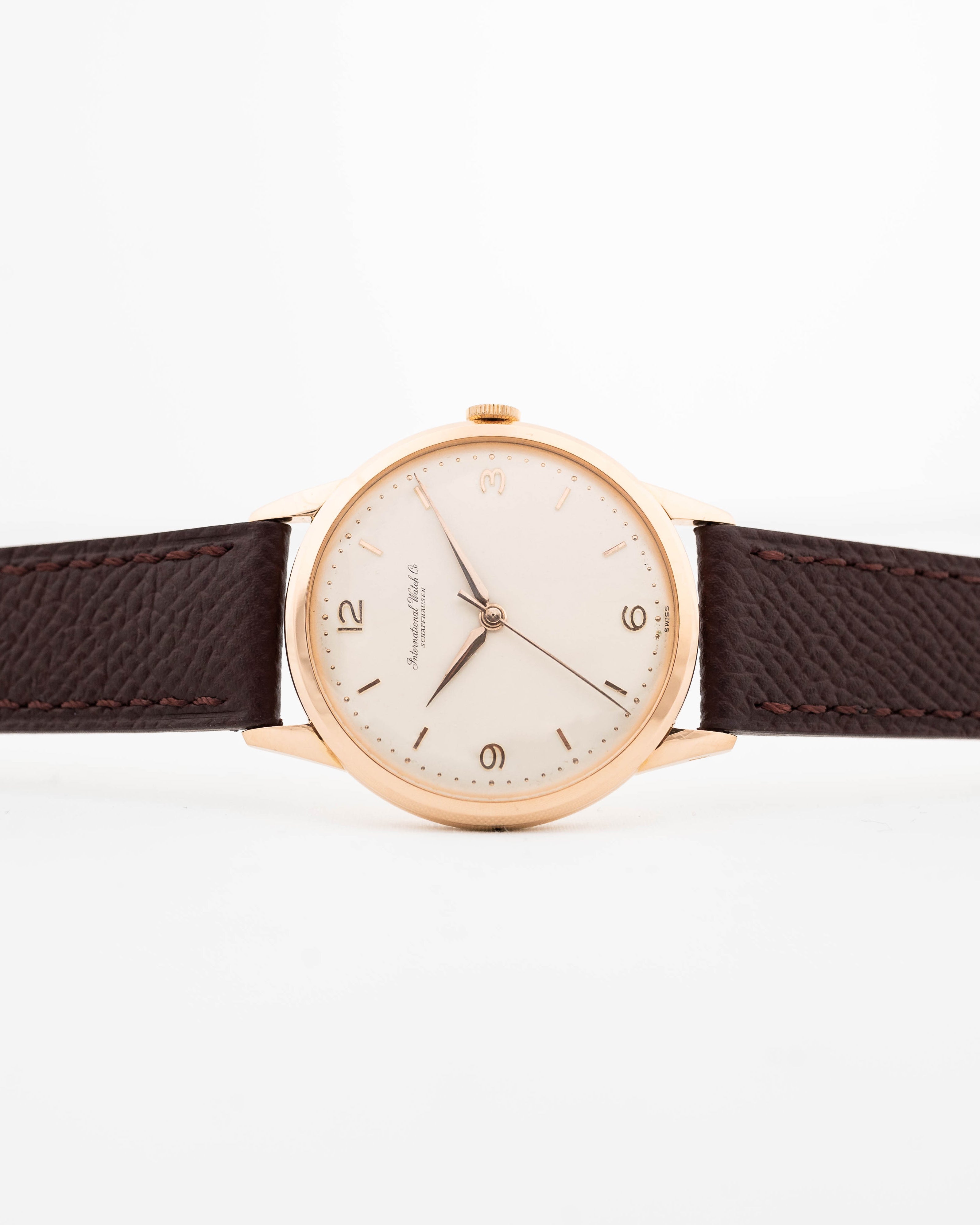 IWC ha producido una gran variedad de relojes de pulsera desde muy pronto, desde relojes de vestir hasta relojes de aviación. Este ejemplo, en oro rosa de 18 quilates, seguiría siendo una constante en las colecciones de cualquiera, sobre todo porque se presenta en estado nos como nuestro ejemplo, incluyendo el certificado y la caja originales de Iwc.