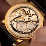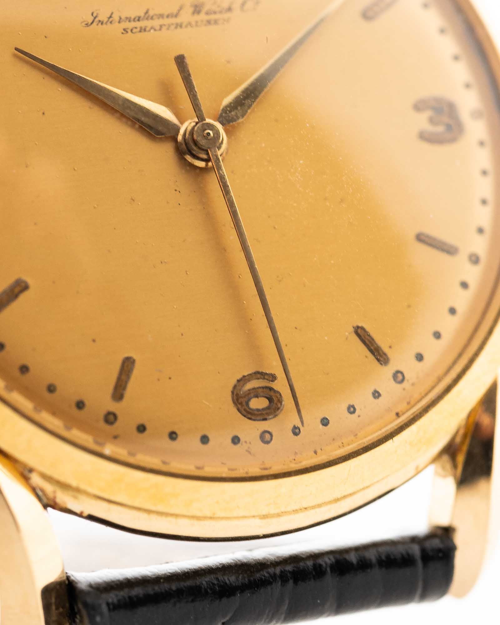 Este IWC de 1948 es una rara combinación del encanto de mediados de siglo y las proporciones modernas. Con una caja de oro amarillo macizo de 18 quilates y un impresionante diámetro de 36 mm, inusualmente grande para la época, es un reloj de vestir que sigue siendo perfectamente actual.