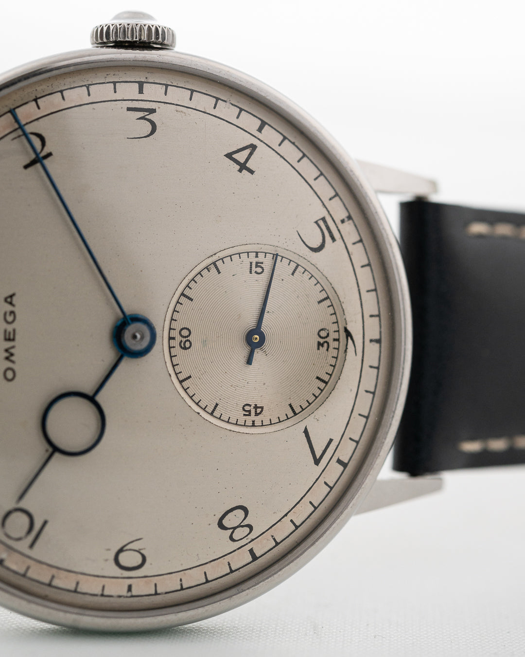 No es el primer reloj de vestir Omega Art Déco del que nos enamoramos. Este ejemplar cuenta con una enorme caja de acero de 37 mm y resulta aún más atractivo gracias a su preciosa esfera con números árabes Art Déco, segundero subsidiario y un maravilloso y exclusivo terminal Pontife azul.