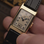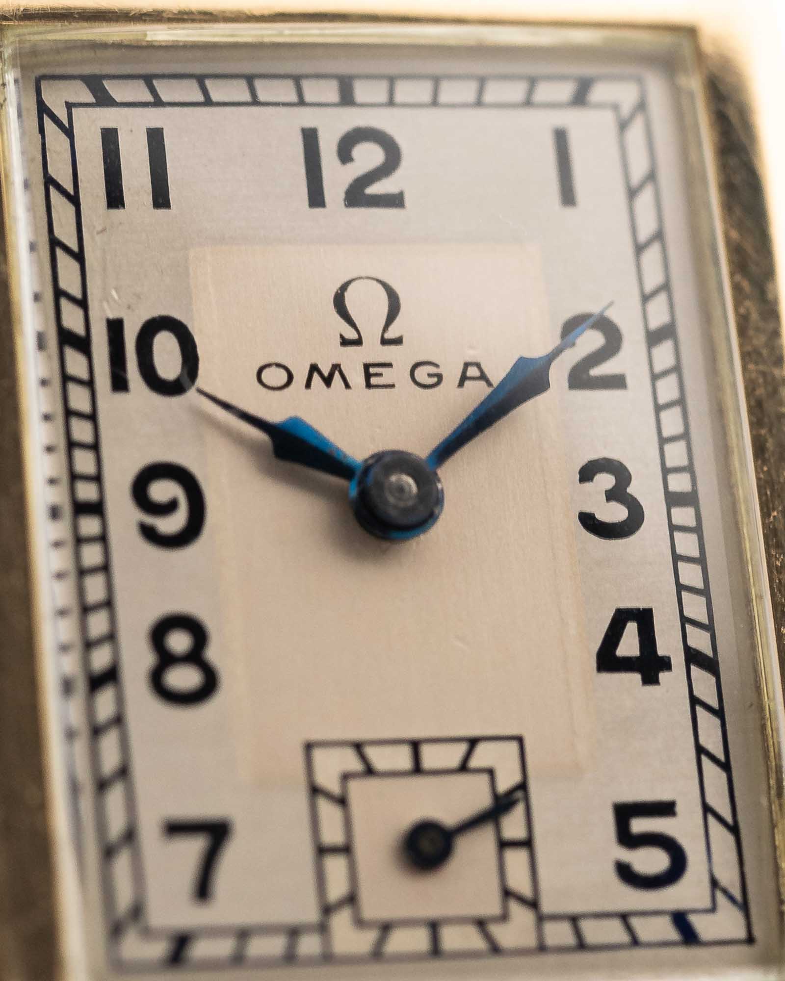 Este exclusivo reloj de vestir Omega de 1935 encarna el refinamiento de la época Art Déco. Con una caja rectangular de oro amarillo de 14 quilates, parece mucho más grande de lo que sugieren sus dimensiones, lo que le confiere un perfil llamativo y elegante en la muñeca.