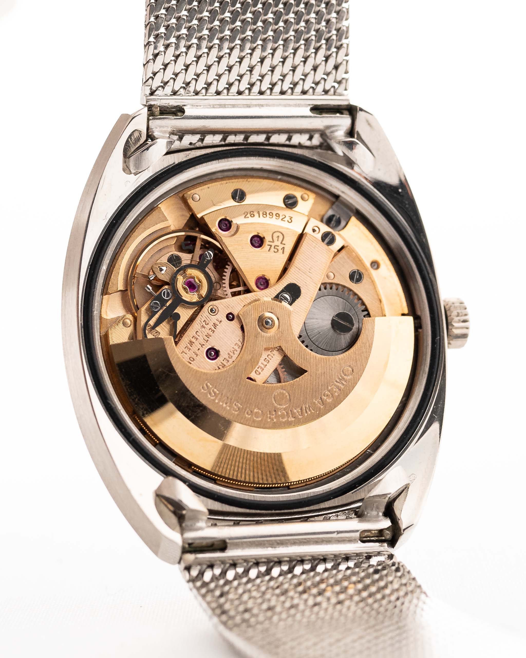 Inside, you'll find the chronometer-certified Omega Caliber 751, a robust automatic movement renowned for its reliability and smooth date functionality.