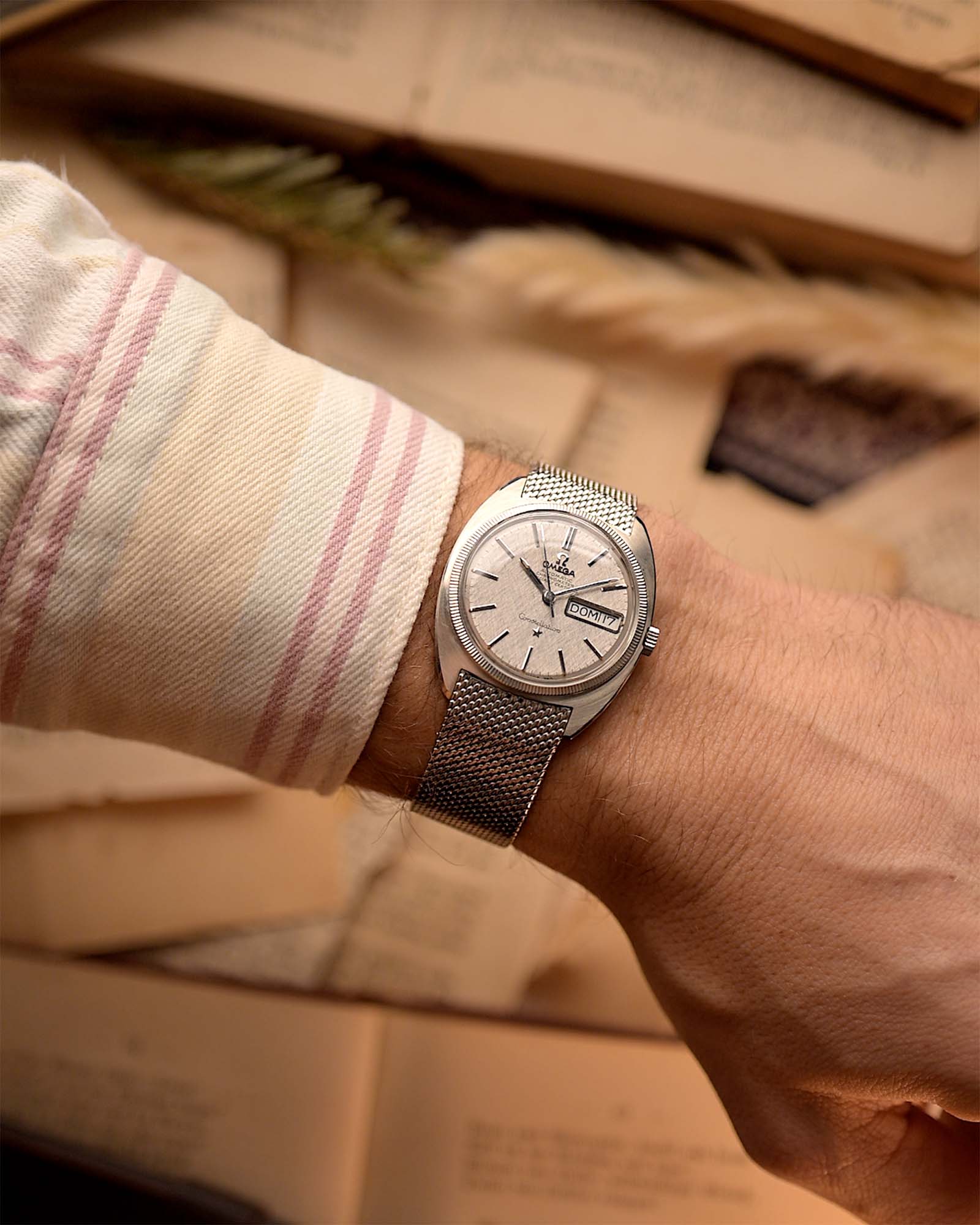 Omega Constellation 168.019 18k – Linen Dial, 1968 - A Rare White Gold Beauty with Milanese Bracelet Elegance
