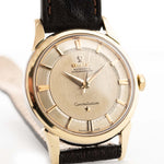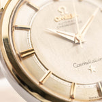 Este compacto y bello cronómetro automático Omega Constellation tiene todo lo que usted desea en un reloj de vestir: Caja de 34 mm chapada en oro, segundero central, esfera de bello diseño con índices de bastón y minutero. Lanzado por primera vez en 1952, el Constellation fue la respuesta de Omega al Rolex Datejust.
