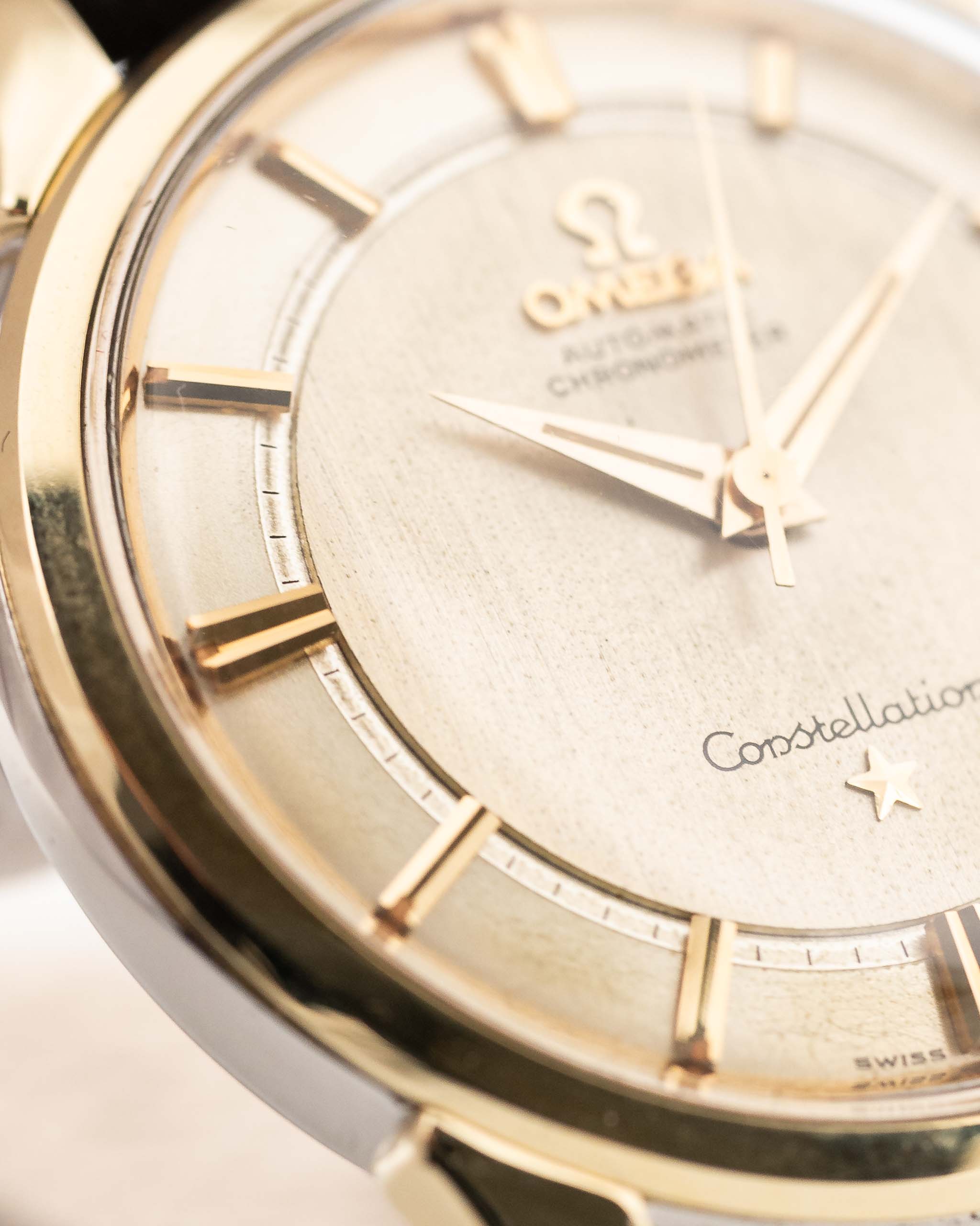 Bien proporcionado, sencillo y clásico, este Constellation cuenta con un fondo de caja atornillado, cronómetro automático Omega Calibre 551 y unas magníficas asas giradas ligeramente hacia abajo.