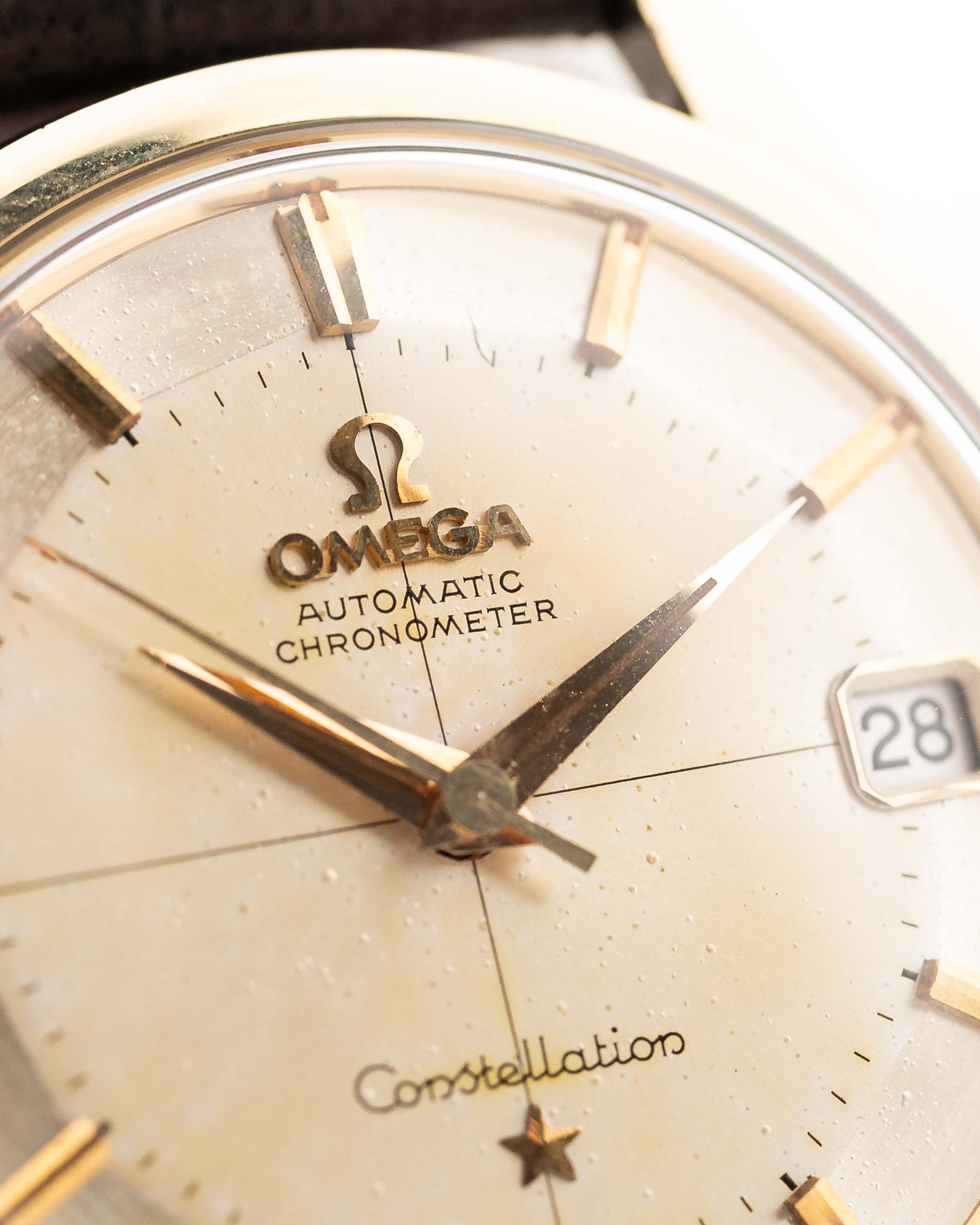 Este compacto y bello cronómetro automático Omega Constellation tiene todo lo que usted desea en un reloj de vestir: Caja de 34 mm chapada en oro, segundero central, una limpia esfera de tarta de champán con índices de bastón. Lanzado por primera vez en 1952, el Constellation fue la respuesta de Omega al Rolex Datejust.