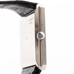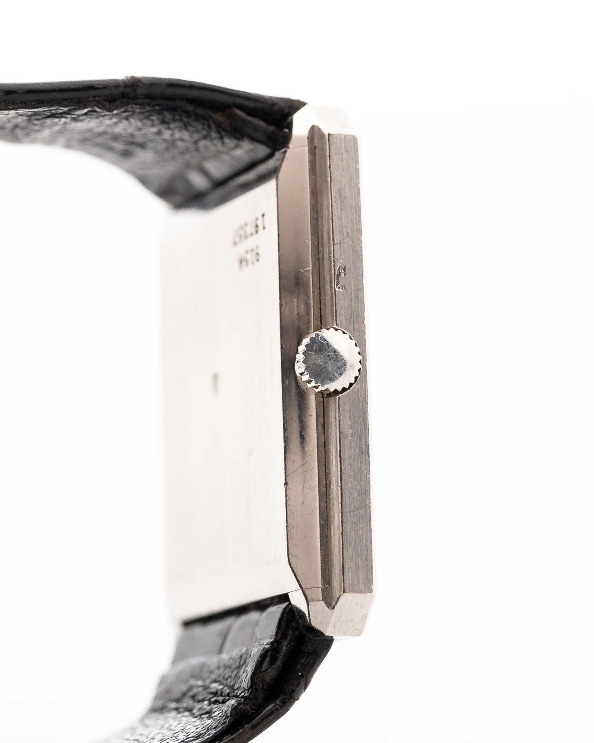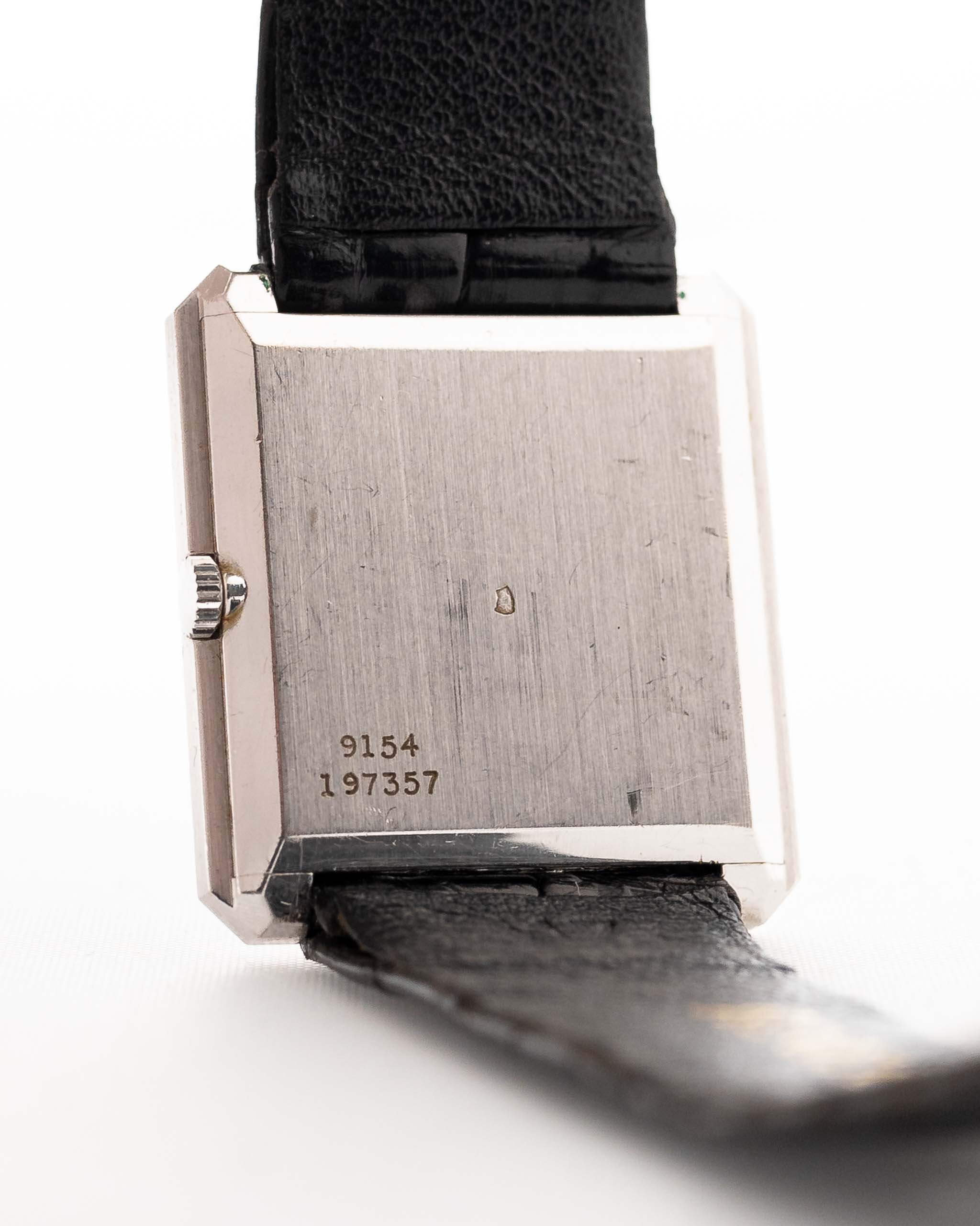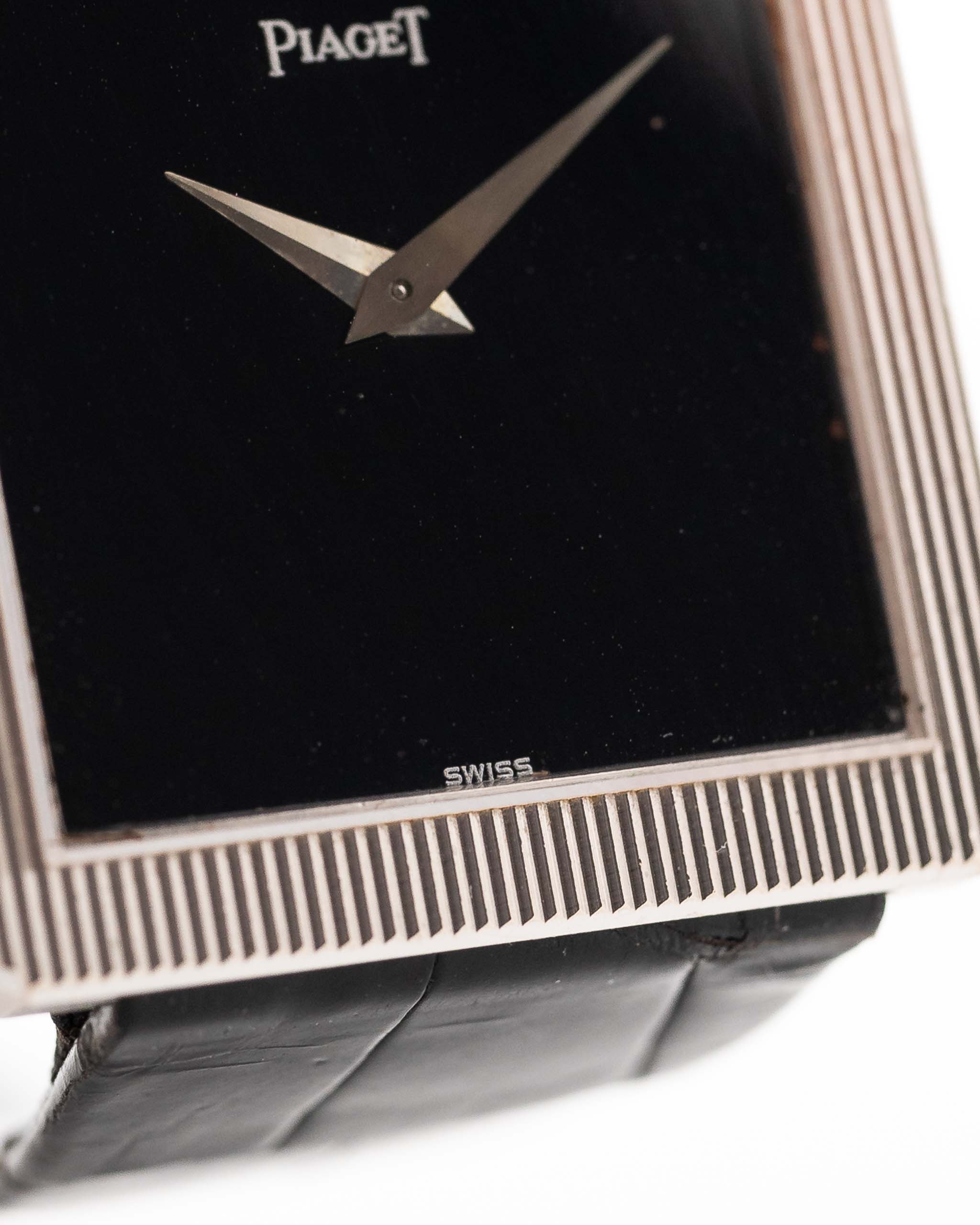 Pocos relojes encarnan la elegancia de los años setenta como este Piaget Ref. 9154 - una elegante creación con forma de tanque elaborada en oro blanco macizo de 18 quilates y dotada de una esfera de ónice natural que brilla con una profundidad estratificada.