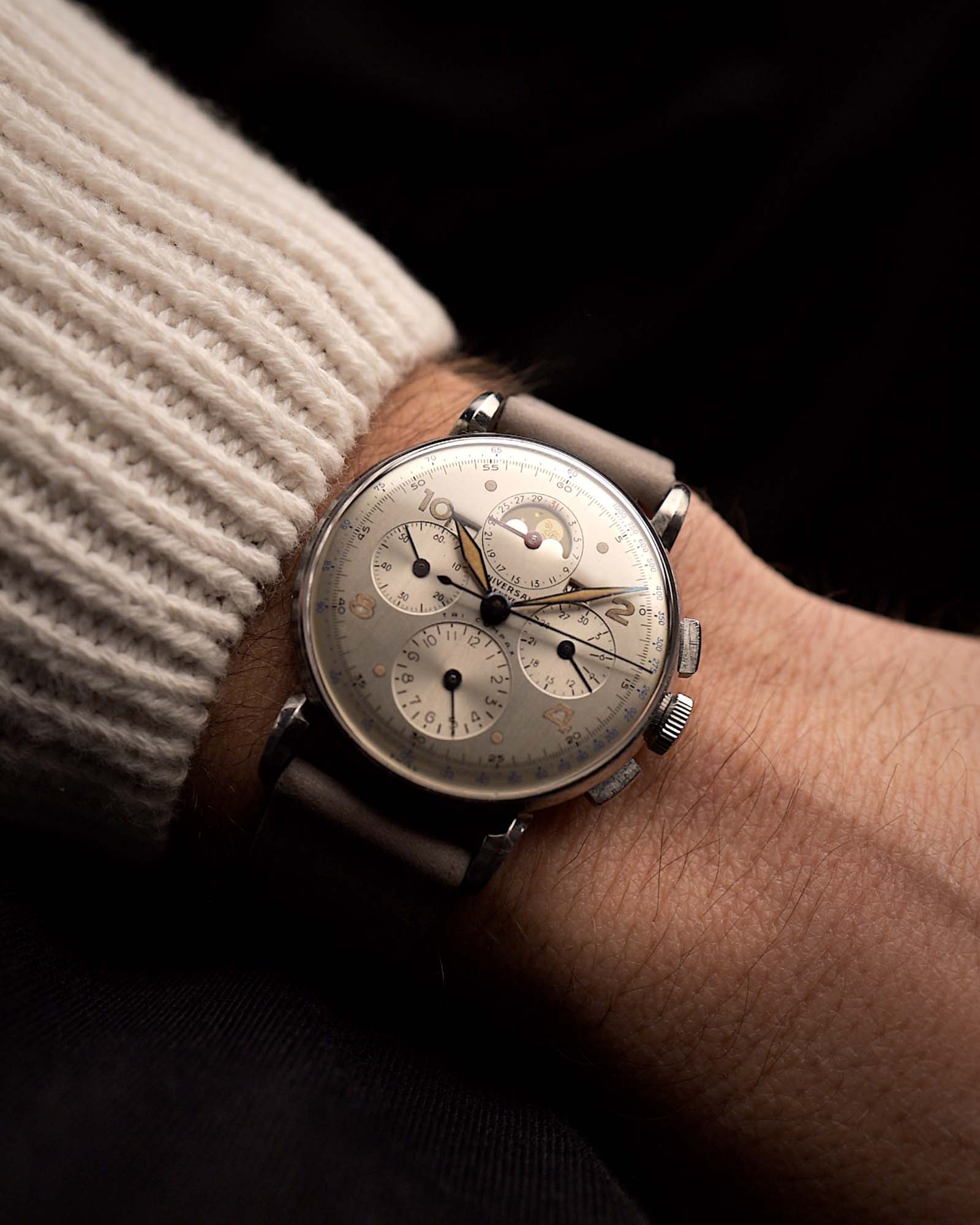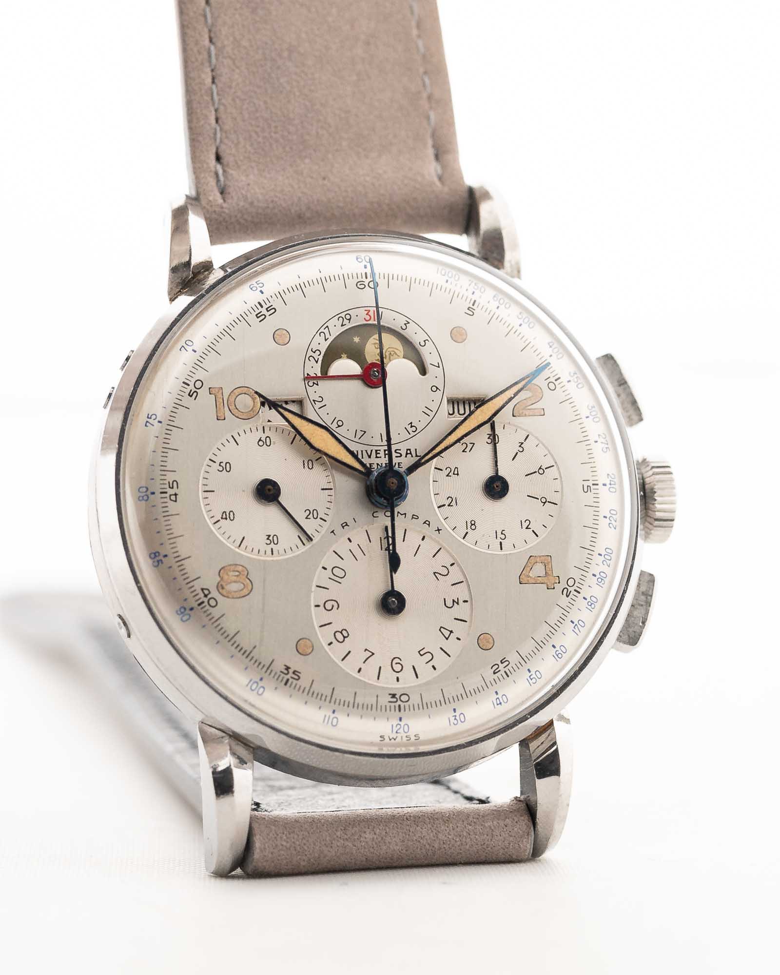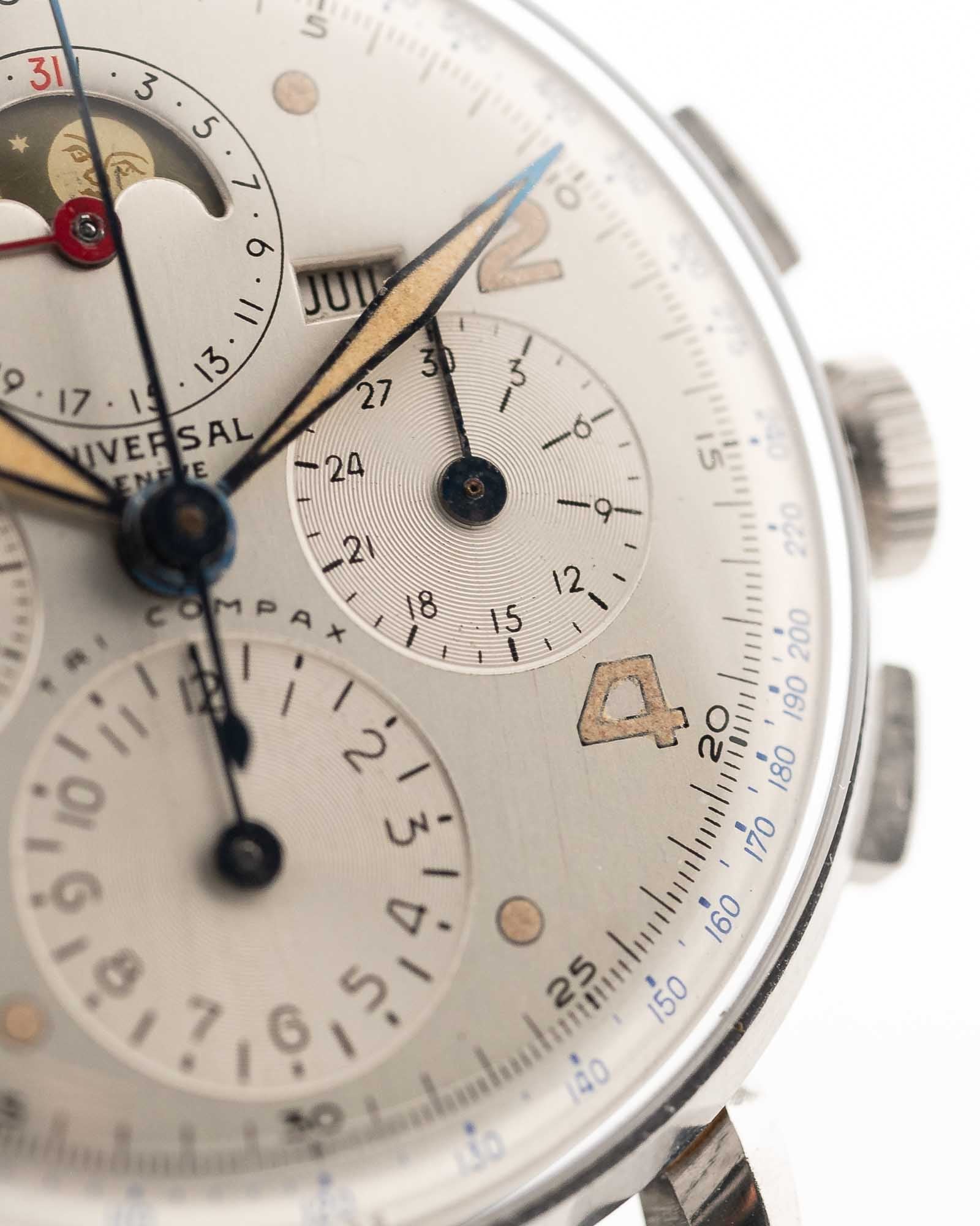 Entre los coleccionistas de Reloj Antiguo , el nombre Universal Genève evoca algo especial. No prestigio de masas, sino pureza. No exageración, sino herencia. Sus legendarios cronógrafos -desde la línea Compax hasta el grácil Tri-Compax, desde el elegante Aero-Compax hasta el venerado Uni-Compax- combinan el ingenio mecánico con un lenguaje de diseño inconfundible. Equilibrado. Sobrio. Icónica.