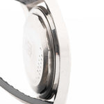 La versión que ve aquí es la versión bumper sin fecha en acero inoxidable con una impresionante esfera plateada/crema de líneas cruzadas y un anillo capitular de acero inoxidable espejado que juega con la luz de forma asombrosa. Las versiones con paragolpes son los Polerouter más tempranos que se pueden conseguir.