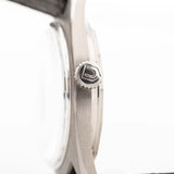 La versión que ve aquí es de acero inoxidable con una impresionante esfera negra en perfecto estado y anillo capitular de acero espejado. En general, se trata de un reloj de bello diseño con una rica historia de la aviación y un impresionante movimiento microtor.